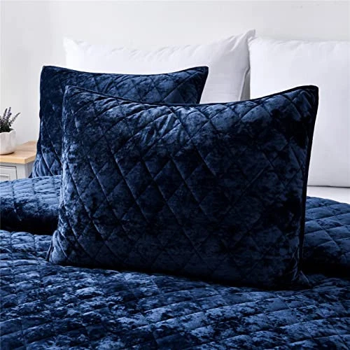 Return Policy Fast Delivery Trusted seller Distressed Velvet Quilt Set, 3 Pieces Navy Queen, Distressed Velvet Face and Brushed Microfiber Reverse with Diamond Quilting Product Description MATERIAL&FILLING: This quilt set is made of 100% polyester distressed velvet for the face and brushed microfiber fabric for the reverse. Both fabrics are finished for super soft handfeel. The fill is made of light weight down alternative polyester. With diamond quilting pattern. This quilt set is light weight and warm, suitable for all seasons. SIZE: 3pc Full/Queen quilt set includes one quilt 90 inch (W) x 92 inch (L), two standard shams 20 inch x 26 inch. MACHINE WASHABLE: Machine Wash Cold, Delicate Cycle, Do Not Bleach, For Best Results, Line Dry or Tumble Dry Low Heat, Remove Promptly. DESIGN&KEY POINT: Distressed velvet, nice quilting pattern, luxurious, super soft and comfortable. Shipping Returns Payment Shipping Shipping is FREE to all addresses other than APO/PO boxes in the lower 48 states. All our stock ships from US-based warehouses. Shipped via USPS or UPS (depending on location and package weight) Unless stated otherwise, all orders will ship within 24-72 hours of your payment being processed. Check our feedback to see the great reviews of FAST shipping we offer. Returns Seller does not accept returns Payment We currently accept payment via eBay managed payments only. Once payment is cleared, we will dispatch your shipment within 1-3 business days. Please refer to the "Shipping" tab for more information regarding shipping speed to your destination.