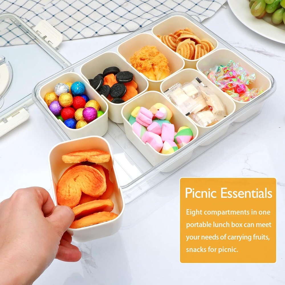 Store New Arrivals Add to Favorite View Feedback Contact Divided Serving Tray with Lid and Handle,Snackle Box Containers with 8 Compartment,Portable Snack Serving Platters Reusable Storae Organizer for Fruits,Nuts,Candy,Party,Picnic,Veggies Description Item Weight 2.01 pounds Item model number WL-008 Country of Origin China Package Dimensions 12.2 x 9.61 x 2.91 inches Manufacturer XING-RUI Versatile and Convenient Snackle Box Container: Our divided serving tray with lid and handle designed with 8 individual compartments which allowing you to organize different types of treats such as snack,fruits,nuts,candies appetizers,or side dishes in one tray to keep them organized,and the removable lid ensures your snacks stay fresh and neatly organized,ready for enjoyment at any time! High Quality You Can Trust: Made from premium BPA-free plastic,this snack tray is durable,easy to clean,and built to last.The sturdy material ensures your divided serving tray with lid withstands regular use, while the easy-to-use removable lid makes it a breeze to access your snacks and the removable compartments allow for easy cleaning. Portability Meets Practicality: This snackle box container is designed with portability in mind.Featuring a compact, lightweight design and a convenient handle,it’s easy to carry and ideal for any occasion.Whether you're snacking at a family BBQ,picnics,parties,gatherings or road trip, the snack container can be taken wherever your adventures lead.Say goodbye to bulky containers—our compact and practical snack box will make snacking simple and stress-free! Perfect for Any Occasion: This 8 compartment snack container isn’t just for snacks—it can also serve as a stunning platter for appetizers,desserts,Impress your guests with an organized and stylish snack presentation,whether you're hosting a brunch or evening party.With its modern design, you'll always know where to find your favorite treats! Easy Care and Maintenance: This divided serving tray with lid and handle is perfect for holding your favorite snacks, please note that it is not microwave or dishwasher safe. To ensure its longevity,hand wash with soap and water. Keep your snackle box container in top shape and ready for use whenever you need it, providing you with a convenient snacking experience every time! Product Description Snack containers Travel snack container Snack box container Beach essentials Snack box Snackle box ABOUT US We offer the best prices around on high quality products. Our E-store includes media such as books, movies, music and games while offering electronics, toys, sporting apparel, clothing, tools, general home, garden items and more. SHIPPING We are always working hard to ensure your package arrives as soon as possible. Please understand that some factors like weather, high postal traffic, and the performance of shipping companies are outside of our control. We offer free shipping to the lower 48 states and ship within 2 business days of payment, usually sooner. We do not accept P.O. Boxes. Please provide a physical address. RETURNS We offer a 30-Day Return Policy on items which you are not completely satisfied with. You have the option for a full-refund or an exchange of the item. No returns are available on items shipped outside of the USA. PAYMENT We accept PayPal. CONTACT US This page content is yet to come Please ad us to your favorite seller and visit again later Thank You CUSTOMER SATISFACTION We try our very best to make sure every customer is completely satisfied. If there's a problem, message us! We're happy to help.