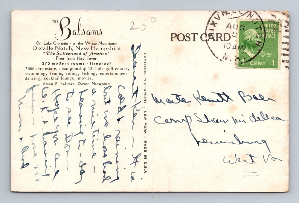 Country: USA Subject: Cities & Towns Postage Condition: Posted Country/Region of Manufacture: Unknown Material: Paper Theme: Cities & Towns Unit of Sale: Single Unit Original/Licensed Reprint: Original Type: Printed (Lithograph) Region: New Hampshire Size: Standard (5.5 x 3.5 in) City: Dixville Notch Era: Vintage