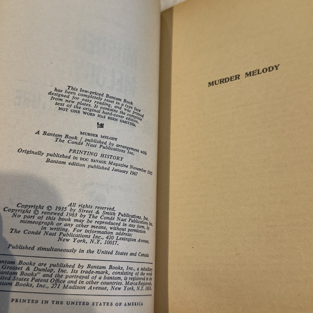 Doc Savage #15 Murder Melody Kenneth Robeson Bantam Books 1967.