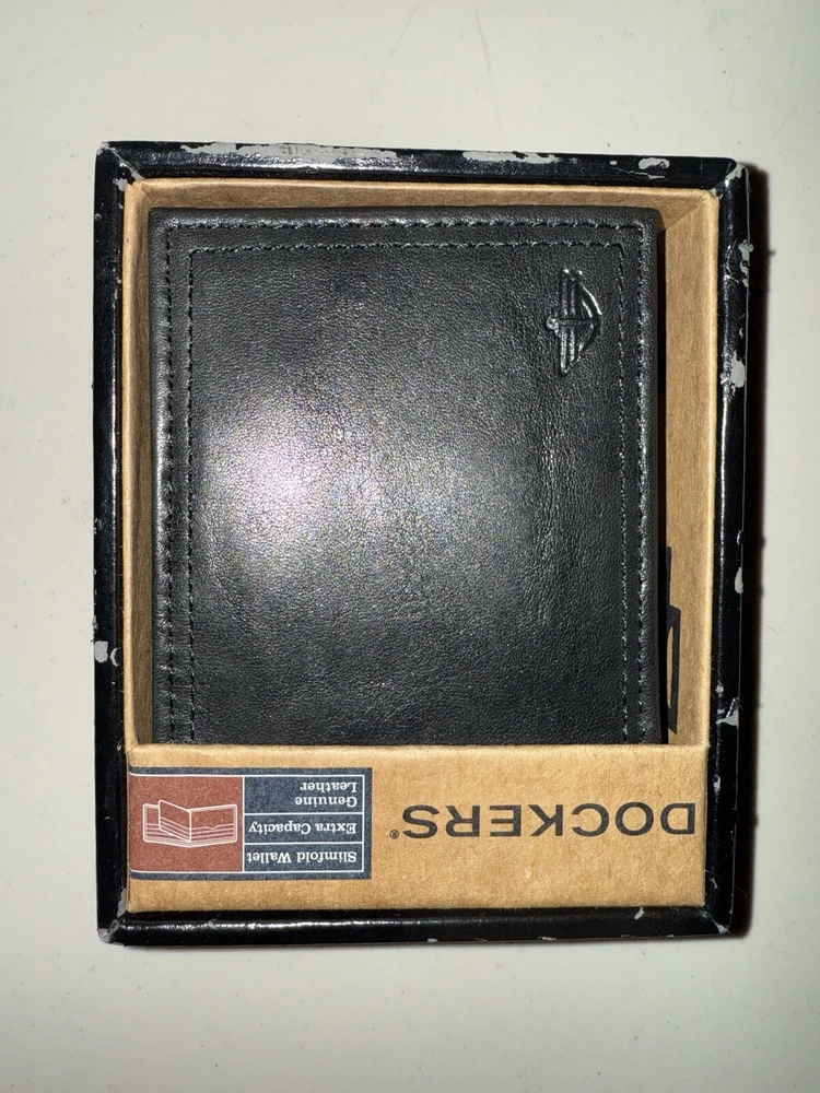 Elevate your everyday accessories with the Dockers Black Leather Trifold Wallet, a sleek and practical choice for the modern man. Crafted from premium leather, this wallet promises both durability and sophistication. Its trifold design allows for a compact and easily accessible storage of essentials, including cards and cash. The wallet's classic black hue ensures it pairs effortlessly with any attire, making it an ideal companion for both professional settings and casual outings. Thoughtfully designed with the user in mind, it strikes the perfect balance between functionality and style, making it a must-have accessory for those who appreciate quality and elegance.