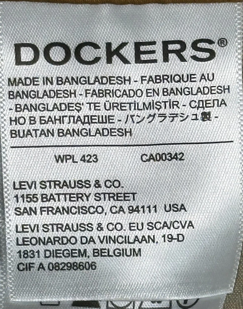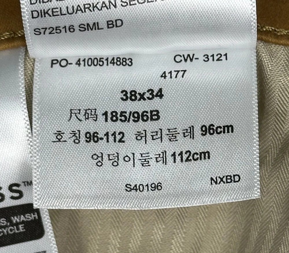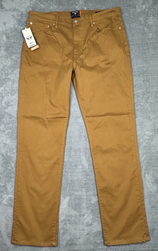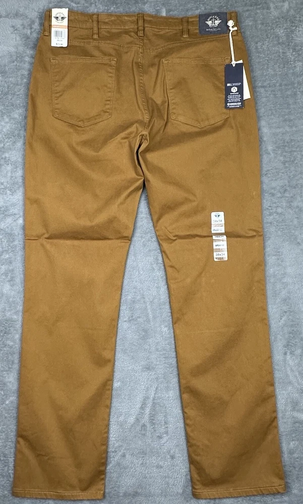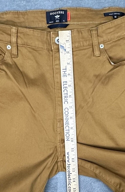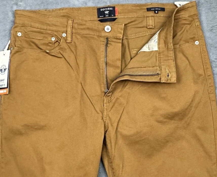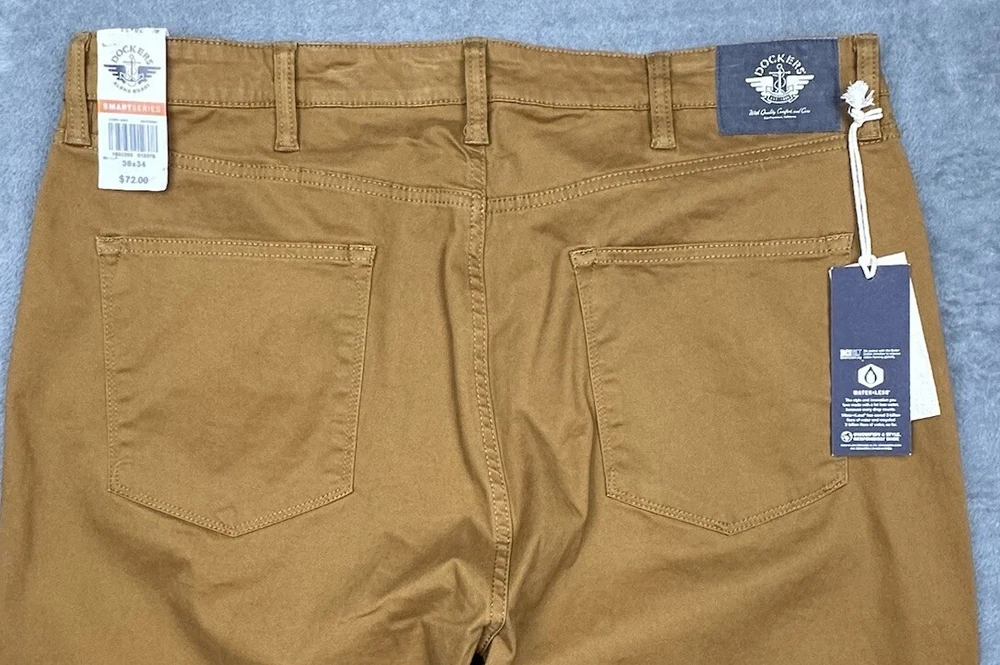 Closure: Zip Waist Size: 38 in Front Type: Flat Front Size: 38 Inseam: 34 in Brand: DOCKERS Pattern: Solid Fit: Regular Country/Region of Manufacture: Bangladesh Features: Comfort, Easy Care, Pockets, Stretch Accents: Button, Logo Color: Brown Garment Care: Machine Washable Pocket Type: 5-Pocket Design Leg Style: Straight Type: Pants Material: Cotton, Polyester, Elastane Season: Fall, Spring, Winter Rise: Mid (10-12 in) Theme: City, Preppy Occasion: Business, Casual, Party/Cocktail, Travel, Workwear Vintage: No Style: Chino Size Type: Regular Department: Men
