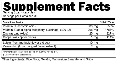 Doctor's Advantage Multivitamin surpasses the highest standards of product quality and efficacy. Every Doctor's Advantage supplement uses premium ingredients in certified US facilities. The premium blend of natural quality ingredients gives a necessary boost to ailing patients and helps promote mental and digestive health. It is a useful medicine that can also support collagen production to repair skin and speed up brain activity healthily and holistically. Science-based formula: Our Macular Shield eye care is based on the findings of the AREDS2 study, a trusted source on AMD prevention; these eye health supplements help support eye wellness and vision by delivering vital nutrients you can lose with age* Targeted nutrient blend: These macular degeneration aids provide key ingredients in dosages similar to those shown to be effective in the AREDS2 study; blended with vitamin C, vitamin E, copper and zinc Antioxidant powerhouse: AREDS 2 eye vitamins rich in antioxidants, lutein and zeaxanthin, that may help combat oxidative stress and protect the macula from damage* Consistency is key: Take 2 capsules in the morning and 2 in the evening; especially recommended as eye vitamins for seniors ages 50 and up; no sugar, starch, artificial color, flavor or sweetener Doctor recommended: Doctor’s Advantage is part of PVG (PRN Vision Group), a complete line of eye care products; more than 4,000 ophthalmologists and optometrists recommend PVG products to their patients