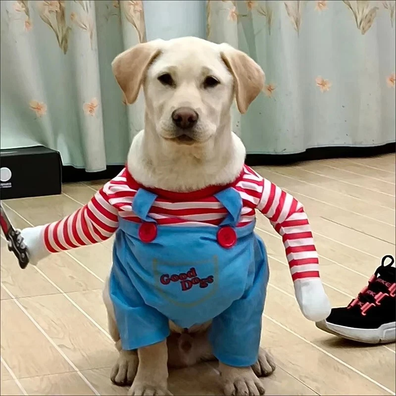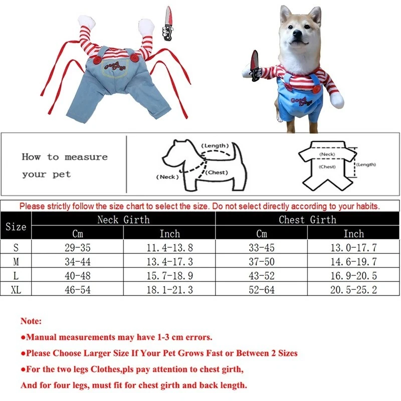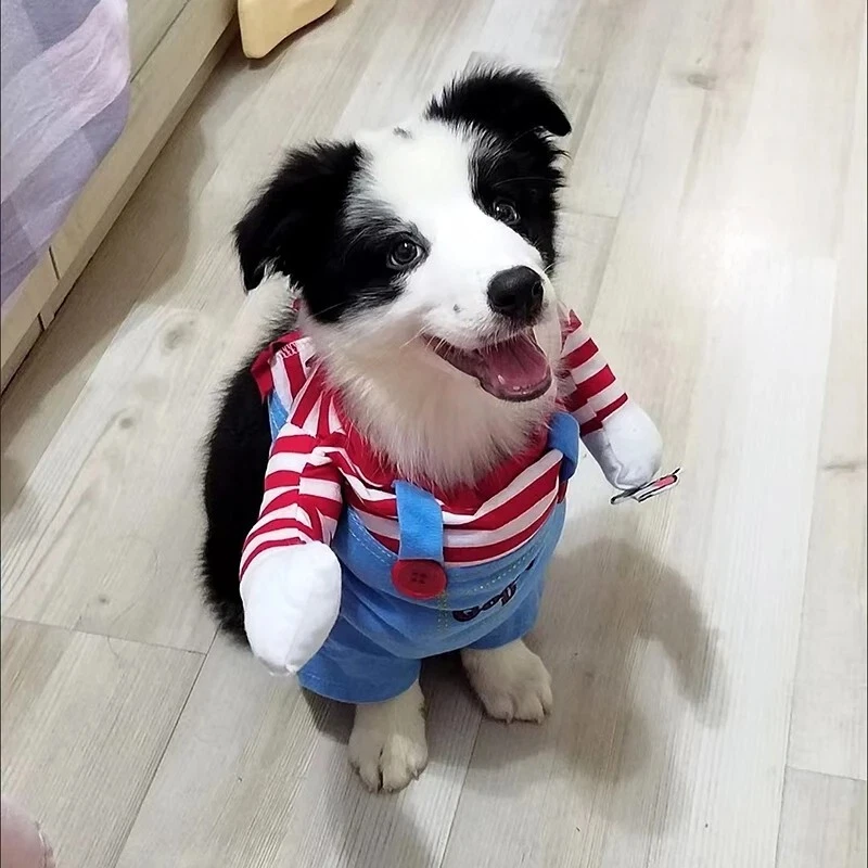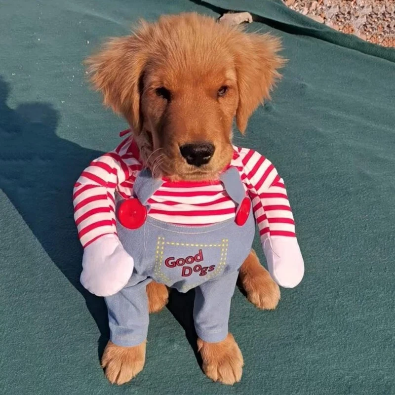 🐾🎉 Chucky Deadly Doll Pet Costume: Spook-tacular Fun for Furry Friends! 🎃👻 Transform your beloved furball into the ultimate fright fest with our Dog Cat Pet Funny Costume Chucky Deadly Doll ! Perfect for Halloween parties, spooky photoshoots, or just turning heads during your evening stroll, this costume is sure to bring laughs and screams alike! 🐶🐱 👀 Why You’ll Love It: Imagine the delight (and maybe a little fright!) on your friends’ faces when they see your pooch or kitty strutting their stuff as the infamous Chucky! This hilarious outfit captures the iconic look of the classic horror doll—complete with a colorful striped shirt, denim overalls, and that signature mischievous grin. Your pet will be ready to channel their inner spooky star! ✨🧸 🌈 Quality & Comfort: Made from soft, breathable fabric, this costume ensures your pet stays comfortable while turning heads! No more struggling to get them into a stiff or scratchy outfit. The easy-to-wear design means you can get them ready for the festivities in a snap! Plus, it’s machine washable, so all that spooky fun won’t leave behind any messy reminders. 🧼🐾 🎊 Perfect for Any Occasion: Whether you’re hosting a Halloween bash, joining a pet costume contest, or just want to make a splash at the dog park, this Chucky costume is a winner! It’s also a fantastic choice for pet-themed gatherings, Halloween family photos, or simply giving your pet some extra love and attention. Who knew Halloween could be this much fun? 📸❤️ 🐕 Sizes for Every Pet: Available in a range of sizes to fit small to large pets, we’ve got you covered! Measure your furry friend to ensure the perfect fit, so they can move freely while looking fabulous! (Don’t forget to factor in a little wiggle room for those playful moments!) 📏🐾 🎃 Get Ready for Endless Snaps! Dress your pet in this uproarious Chucky costume and get ready for a flood of likes on your social media! Capture the moment they pose with their best spooky face or strike a silly stance—this costume is perfect for creating memories that will last a lifetime. 🥳📸 🧡 Unleash the Fun! Don’t wait until the last minute to grab this essential Halloween accessory. Your pet deserves to be the life of the party, and this Chucky Deadly Doll costume is just the ticket! So go ahead, add some flair and fun to your Halloween festivities. Get ready for all the “aww”s and “oh no!”s as your furry friend becomes the star of the show! 🌟👻 🎁 Order Now: Prepare for the spookiest, silliest Halloween yet! Order your Dog Cat Pet Funny Costume Chucky Deadly Doll today and let the hilarity begin! Because who said pets can’t join in on the Halloween fun? 🐾💀✨ Get ready to make memories and enjoy a howling good time! 🐾🎉
