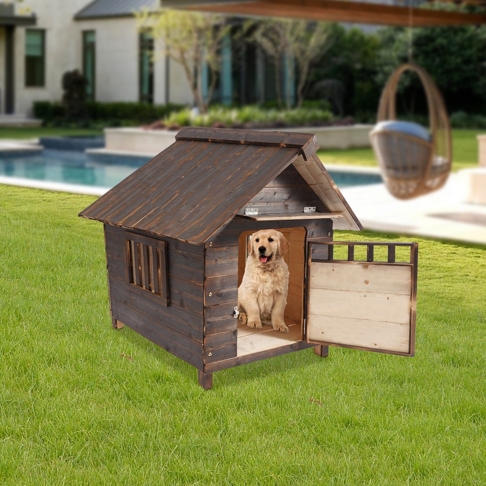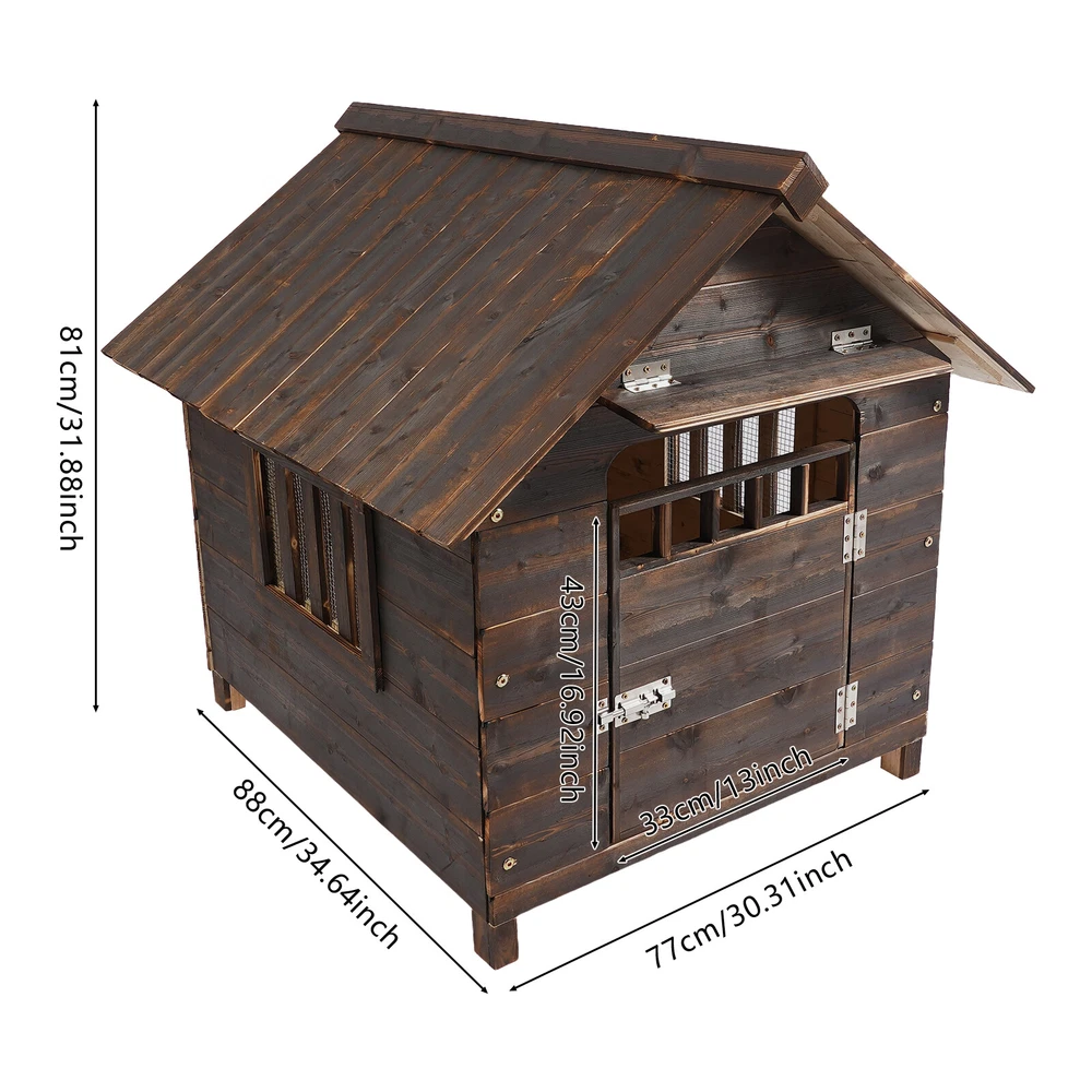 Specification Color: Brown Style: Modern Assembly Required: Yes Mounting Type: Freestanding Target Species: Dog Applicable Dog Size: Within 17.5kg/38.58 lbs, Within 26.38 inches Long Product Size: 77*88*81cm/30.31*34.65*31.89in Door Size: 33*43cm/12.99*16.93in Package Size: 93*62*19cm/36.61*24.41*7.48in Gross Weight: 16kg/35.27lbs Net Weight: 14kg/30.86lbs Dog House, Dog House With Window and Door, Pet House ,Four season universal Welcome Dog House, Dog House With Window and Door, Pet House Description Like an oasis of calm in the midst of the hustle and bustle of everyday life, this meticulously designed dog house provides a warm and quiet haven where your beloved pets can relax and indulge in sweet dreams. This ingenious work not only reflects the deep concern for the well-being of pets but also highlights the owner's elegant taste in life and extraordinary art appreciation. Key Features Build to Last: It is made of high-class material, making it robust, wear-resistant, impact-resistant, environmentally friendly, safe, and has a long service life. Thoughtful Design: The sloped roof with sunshade prevents rainwater buildup as well as shading, so your pet can stay dry and clean even on rainy days. In addition, the openable door and windows allow for ventilation in the summer and light in the winter. Enough Living Space: The spacious size of 30.31*34.65*31.89 inches can accommodate dogs weighing up to 38.58 pounds and up to 26.38 inches in length, providing a spacious and comfortable living space for your pet! Healthy Living: Our product makes it possible for dogs to stay away from dirty and wet floors, avoiding skin diseases and providing safety for you and your family. Simple Installation: With complete accessories, simple construction, and an installation diagram, you can install it yourself and have fun! Easy to Clean: Thanks to its simple structure and smooth surface, you can easily wipe it clean with a rag (not included) or rinse it with water. Ideal Gift : It can be given as a gift to your friends or colleagues who have dogs at Christmas, Thanksgiving, birthdays, etc. Protective Package: We have used air bubble bags to wrap this product to minimize damage to the product during shipping. Details Raised Bottom: The raised bottom ensures product stability and prevents water from flooding as well as making it easy for you to clean. Mortise and Tenon Construction: Its grooved mortise and tenon design makes the product stronger and tighter. Application It can accommodate dogs up to 38.58 lbs and 26.38 inches long, it is mainly suitable for outdoor and indoor use or pet stores and can be placed in gardens, backyards, balconies, and other places. It can accommodate dogs such as Beagle, poodle, and Cocker! Installation Instructions 1. Please assemble the front board, backboard, left sideboard, and right sideboard with screws. 2. Please put the two bottom boards into the bottom of the assembled house body. 3. Please place the top board on the top of the house body without fixing screws for daily cleaning and drying. Specification Color: Brown Style: Modern Assembly Required: Yes Mounting Type: Freestanding Target Species: Dog Applicable Dog Size: Within 17.5kg/38.58 lbs, Within 26.38 inches Long Product Size: 77*88*81cm/30.31*34.65*31.89in Door Size: 33*43cm/12.99*16.93in Package Size: 93*62*19cm/36.61*24.41*7.48in Gross Weight: 16kg/35.27lbs Net Weight: 14kg/30.86lbs Package Included 1* Dog House 1* English Installation Diagram Other Accessories for Installation Notes Please check the style and size before purchasing. Please make sure to tighten the screws when assembling, so as not to loosen the body of the house and bring safety hazards to pets. This product is for both indoor and outdoor use, please inspect it regularly to prolong the service life of the house. Please clean and sweep regularly to keep it clean and tidy and create a warm and comfortable environment for your pet. Please allow the slight color difference caused by the shooting light and 1-3 cm error due to manual measurement, and make sure you do not mind before ordering Payment Delivery details Terms of sales About us Contact us Payment We accept ebay payment 。 Fees such as import duties, taxes are not included in the item price or shipping costs. These charges are the buyer's responsibility. Delivery details Shipping: 2-9 working days to: USA Terms of sales We maintain high standards of excellence and strive for hundred percent customer satisfaction. Feedback is very important to us. We hope that you contact us immediately before you give neutral or negative feedback, so that we can address your concerns. It is impossible to address issues if we do not know about them! About us Your satis faction is our ultimate goal. We work hard to earn your trust and future business. Our certified technicians have tested each item before shipping. The unit comes with 1 year limited warranty on all manufacturing defects. a) If you receive a defective item, you may return it or ask for a discount. Please contact us within 14 days after you receive the package. b) What you returned must be intact and in its original packaging as re? u. Customer is responsible for shipping costs of the returned item. c) We will cover the cost of shipping back t with the shipping rate indicated in the registration page. We will send you a new unit or refund the full payment you paid. Thank you. Contact us Business Hour Business Hour: Monday To Friday: 8:30 AM to 5:00 PM (Beijing China time) Due to time zones, our reply to your questions may not be immediately. But within above working time, we will reply your email within 24 hours. If it's non-workdays, please kindly be patient and wait till Monday. Please contact us with ebay message. Please feel free to contact us if you have any questions. Monday To Friday: 8:30 AM to 5:00 PM (Beijing China time) Due to time zones, our reply to your questions may not be immediately. But within above working time, we wi