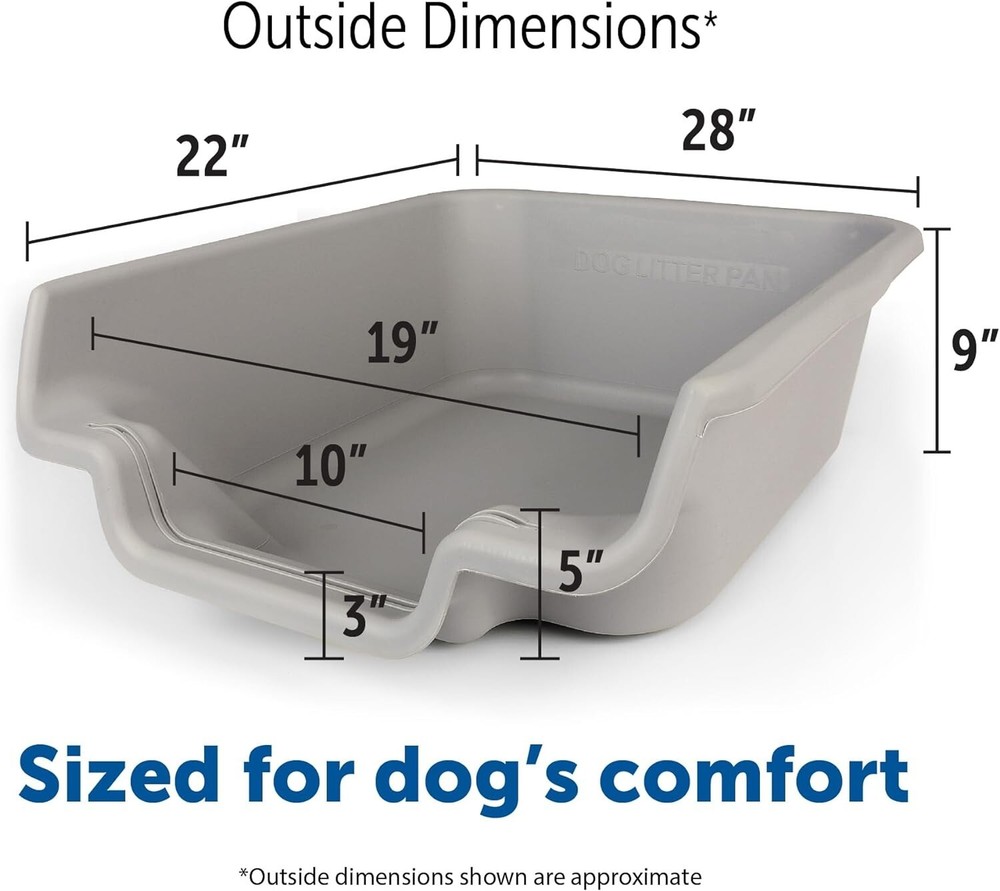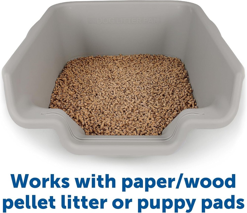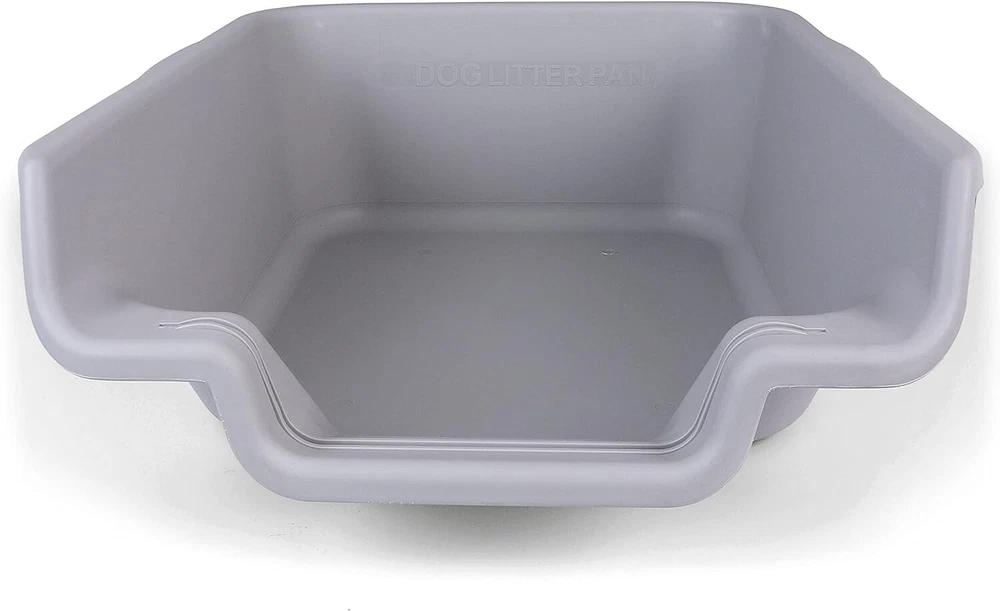 Dog Litter Box, Misty Gray, Extra Large Size, Durable & Pet Safe Puppy Litter Box, Indoor Open Top Entry Dog Litter Pan, Comfortable for Dogs, Great for Dogs up to 35 lbs SPECIALLY DESIGNED FOR DOGS: This dog litter pan is designed in such a manner that it can be used with both paper litter and puppy pads. This dog litter box is convenient for you and comfortable for your dog. GREAT ALTERNATIVES FOR WORKING FAMILIES: The dog litter tray is a great alternative for those who are living in an apartment. The puppy always has a place to go when you can't take them outside, which helps to avoid accidents. OPEN TOP LITTER PAN: Open top litter pan to ensure healthy usage (enclosed spaces might cause behavior issues). Plus, the open top entry and the low entrance design makes it easy for your puppy to get in and out. The dog can see around him in a vulnerable position and feels safer, thanks to its low side design. SMART & DURABLE DESIGN: This innovative litter box is made with durable, easy-to-clean materials. The perfect way to keep your puppy's potty area clean and tidy! Available in multiple sizes and color options to choose from according to your dog size. EASY TO USE: This pet safe litter box is very easy to handle. Please for any additional concerns prior to ordering. Do not expect dogs to use the pan without training.