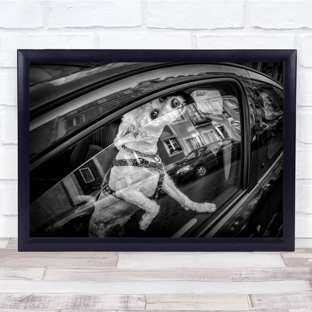 Dog Street Urban Window Monochrome Candid Animal Pet Hi There Wall Art Print
