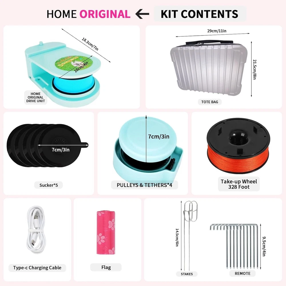 Dog Toys for Large Dogs,Lure Coursing Machine,Dog Chase Toy Motorized Line,Dog Agility Course Backyard Set,Dog Toys Green Outdoor Dog Toys: This is a Lure Coursing Machine that stimulates the hunting nature of Sighthoounds or cats. Most all Sighthound breeds love lure coursing natural ability to run fast and visually focus on something in motion. Dog Chase Toy: Quiet lure course machine over 55KM/H(34 MPH), Fully charged and can run continuously for up to 40 Min, Type-C charging, Convenient for outdoor and indoor installation,Sturdy packaging,And easy to carry. APP Intelligent Control: Record each running time (milliseconds), speed, total mileage, and calorie consumption. Custom mode controls operation. Start at a scheduled time, and freely set the duration of each run. Dog chase toy motorized line: This is an outdoor chase toy suitable for For Small Medium Large Dogs, which can effectively consume pet energy, increase dog or cat exercise, and burn pet calories. Rich accessories make it easy to install indoors and outdoors. Interactive Dog Toys:lure course machine The kit includes a main unit,4 pulleys, 100M of line(328 ftt), 5 indoor suction cups. 10 ground nails,tethers, a line winder, and a roll of 15 flags. Two driving hosts , it can achieve a continuous cycle of 400M line (1300ftt) and a speed of 64 kilometers per hour (39MPH)。The APP comes with a built-in timer, Which can be used for timing competitions. Most all Sighthound breeds love lure coursing events. It provides them a great outlet to use their natural ability to run fast and visually focus on something in motion. A mechanical lure which consists of a plastic bag attached to a movable line positioned slightly above the ground is controlled by a lure operator who moves the white bag in quick manner across a field according to the course layout, Simulating the unpredictability of a real chase.