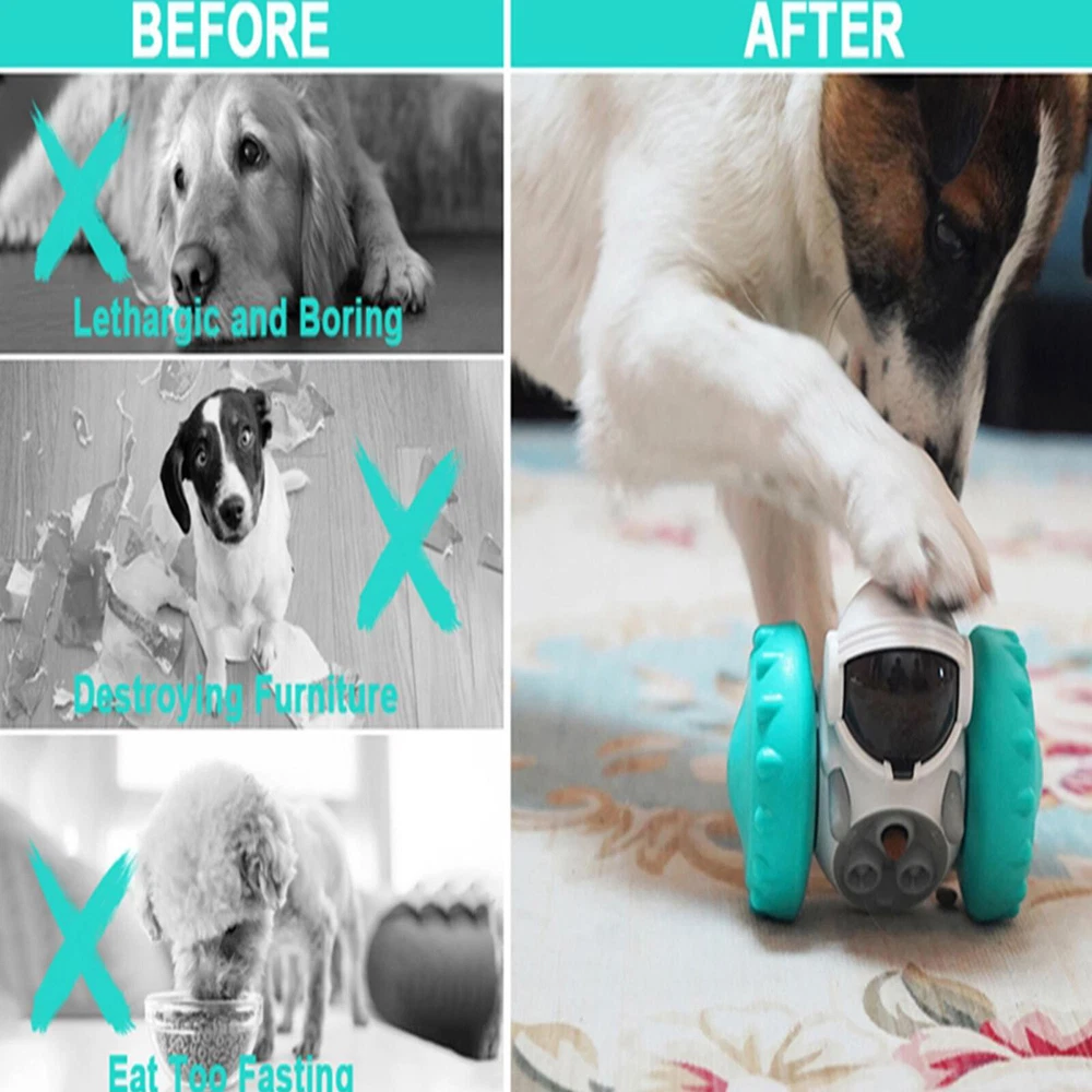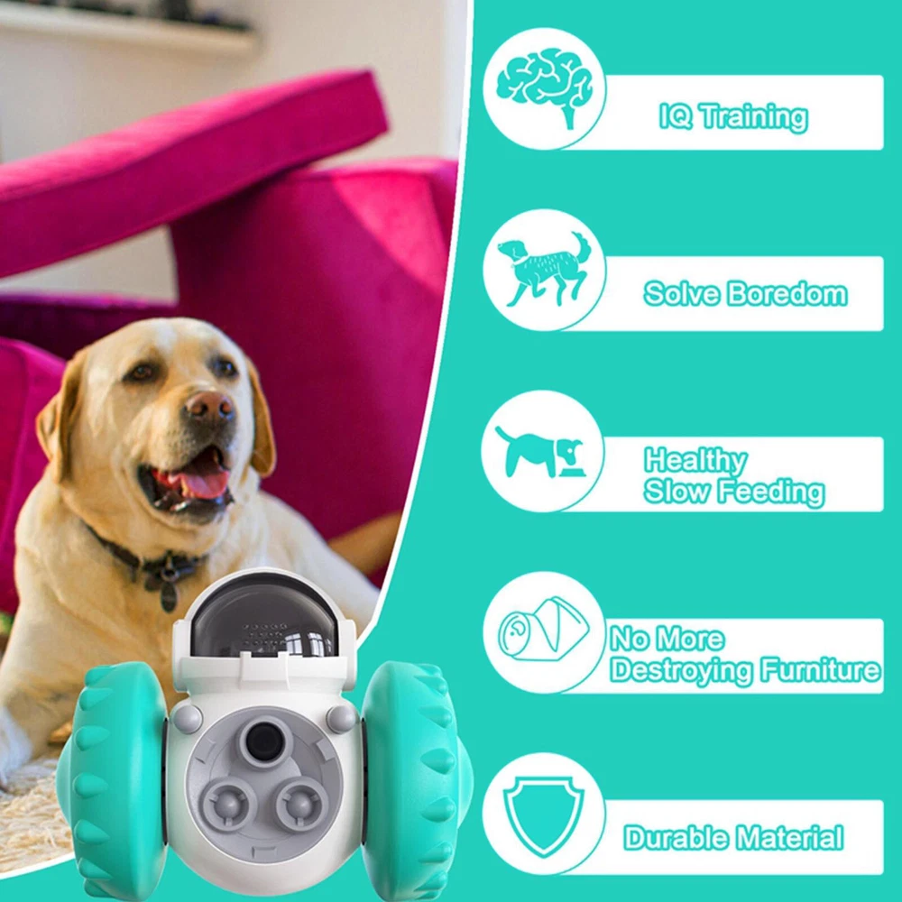 Bullet Points: 【Improve IQ】Dog Treat Dispenser Toy is a specially designed dog puzzle toy, which can be stuffed with food for dogs to eat and play while developing their intelligence 【Slow Down Eating】Dog Food Puzzle is great for slowing down eating, helping prevent choking, indigestion, and obesity, and allowing your dog to have fun and eat healthily. 【Intelligent Robot Modeling】Intelligent robot modeling appearance design is adopted, Dog Enrichment Toys are cute and will move forward and backward by pet's touching 【Sturdy Material】Dog Slow Feeder has the characteristics of being bite-resistant, wear-resistant, sturdy and safe, due to the adoption of food-grade ABS and PC 【Transparent Granary Cover】Interactive Dog Puzzle Toys is designed with a transparent granary cover, you can directly add pet food or snacks by moving the transparent granary cover upward with your thumb Feature : 1. Improve pets' IQ, dog brain stimulating toys, puzzle toys for dogs to keep busy long lasting 2. Effectively help slow down eating to help pets develop healthier eating habits, helping prevent choking, indigestion, and obesity 3. Adopt robot And wheel appearance design, which integrates functions such as movability and without falling down 4. Adopt a dead weight leveling system, there is no electric drive required, it will move forward and backward by pet's touching 5. Made of food-grade ABS and PC, very wear-resistant and chewable, and it is very safe and reliable 6. Designed with a transparent granary cover, you can directly add pet food or snacks by moving the transparent granary cover upward with your thumb 7. Interactive Dog Puzzle Toys can help pets get rid of a bad mood and keep them lively and curious Specification : Item Type: Dog Slow Feeder Material: ABS + PC Color: blue Weight: 246g Size: Length: Approx. 13.8 cm/5.43inch Width: Approx. 8cm/3.15 inch Height: Approx. 11.1cm/4.37inch Package List: 1 x Dog Treat Dispenser Toy On Jan 11, 2025 at 05:06:30 PST, seller added the following information: