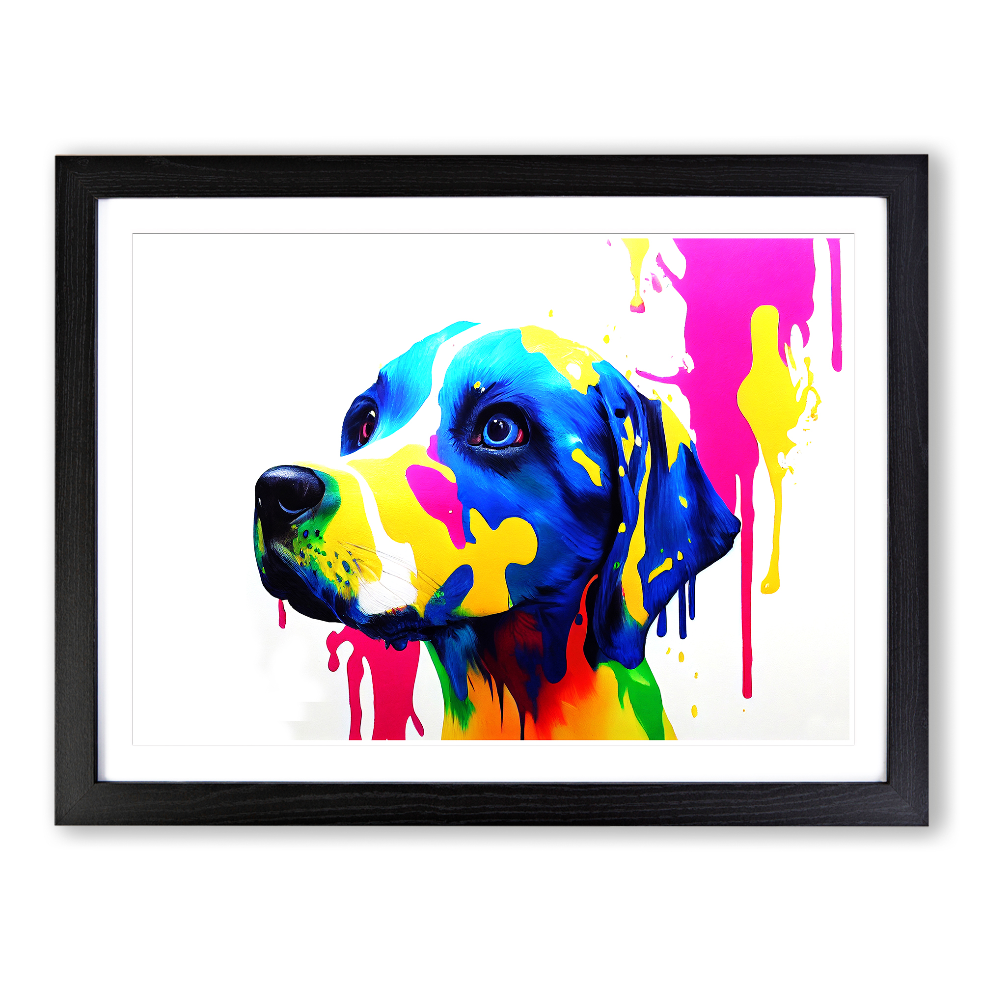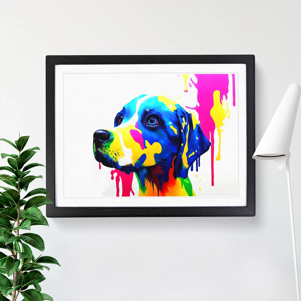 Transform your living space with our captivating framed wall art prints. Crafted in the UK, the stunning Dog Paint Splash Vol.6 Abstract framed print is designed to elevate your home decor. We utilise high-quality inks to ensure the colours of the artwork are rich, vibrant, and true to life. The print seamlessly fits within a contemporary frame, creating a stylish wall art picture that is ready to hang in your living room, lounge, bedroom, dining room and home office. Visit Our Shop eBay Message Framed Art Print Enhance your living space and showcase your individual style with our framed prints. Each design is printed upon premium art paper with fade-resistant inks, ensuring the colours remain rich and vibrant for years to come. The print is encased in a ready-to-hang frame, offered in black, oak, or walnut, and safeguarded by shatter-resistant Perspex. An ideal addition to your home, and the perfect gift choice. Like what you see? Visit our eBay store to see more. Premium Quality : The design is printed on quality art paper, enhanced with fade-resistant colours. Ready to Hang : The frame is pre-fitted with hanging hardware, making wall mounting simple, safe and secure. Frame Dimensions : A4 - 25 x 34 cm / A3 - 34 x 46 cm / A2 - 46 x 64 cm. Fast Shipping : Prompt, reliable UK-based dispatch. Customer Satisfaction : Our priority is your satisfaction which is why we offer a hassle-free return policy. Payment You can pay for your order safely and securely via credit or debit card, Apple Pay, Google Pay, and PayPal. Shipping Production times are 1 to 2 working days. Orders are sent via Royal Mail or Evri (depending on size). Returns For your peace of mind, we have a 30-day returns policy in place. Please, contact us for more details. At Big Box Art, we are dedicated to providing high-quality wall art and decorative homeware items. From the outset, we've focused on excellence in our products, service, and reputation, continually enhancing our standards. With an extensive selection of designs, you're certain to discover the perfect piece to suit your taste. ? Copyright 2021, Big Box Art. All rights reserved. Made with by eBayshopdesign.org