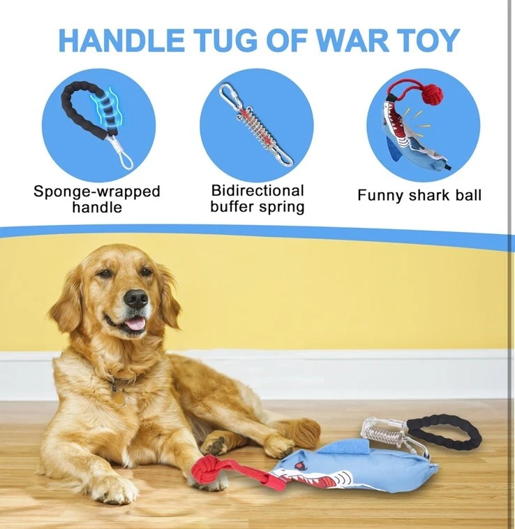 Dog tug of war Toy with Handle, Dog Toy with Squeak, Interactive tug of war Toy for Indoor and Outdoor Dogs, Suitable for Small to Large Dogs, Durable tug of war Dog Rope Toy with chew Toy