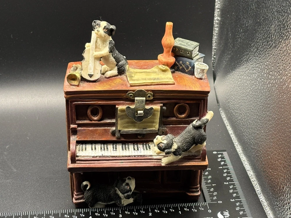This Is A Dogs Puppies On A Piano Money Coin Bank Trinket Box With Lock And Key. You Can Add Money In The Slot At The Back Of The Piano Check The Pictures For Condition Before Purchase. Thank You For Shopping With DepotStreet. Please Check Out The Other items In Our Store.