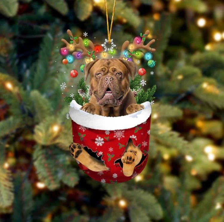 Dogue De Bordeaux In Snow Pocket Christmas Ornament Flat