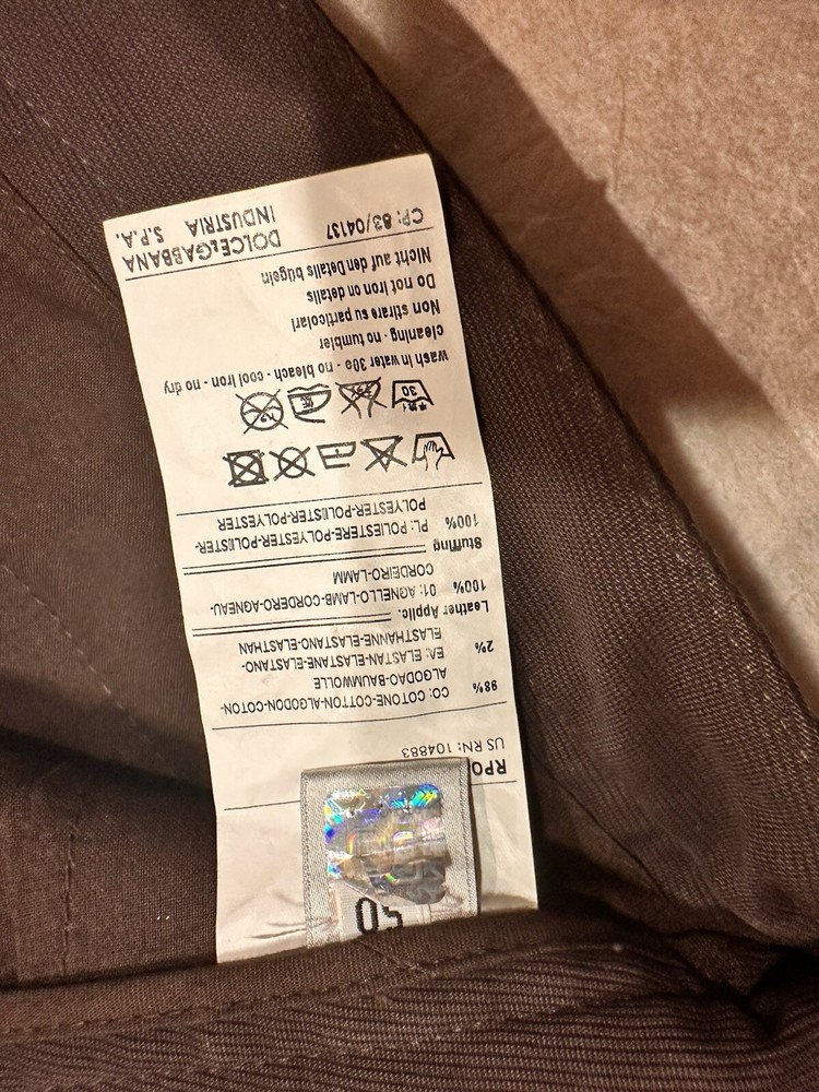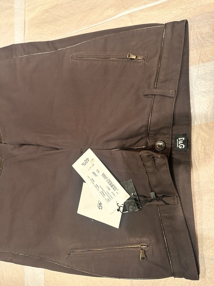 Elevate your wardrobe with these stylish Dolce & Gabbana pants for men. Crafted from high-quality cotton, these pants feature a comfortable mid-rise fit with a 36-inch inseam and a 5-pocket design. The pants come in a classic brown color with button, zipper, and logo accents that add a touch of sophistication to your casual or dressy look. Perfect for any occasion, these pants are suitable for winter, fall, and spring seasons. Whether you're dressing up for a night out or going for a casual weekend look, these Dolce & Gabbana pants will make you stand out. The pants are available in size 50 with a waist size of 36 inches, making them a great fit for most men.