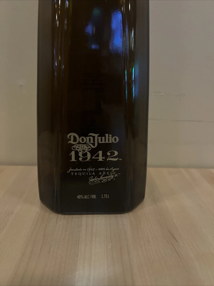 This Don Julio 1942 Añejo Tequila bottle is a must-have for collectors and tequila enthusiasts alike. With a volume of 1.75 L and a beautiful carmelite color, this bottle is a great addition to any collection. The bottle type is a liquor bottle and it was manufactured in Mexico. The bottle is empty but still has a cork in place, making it a unique and rare find. This modern (1900-Now) liquor bottle is perfect for display or as a conversation starter. Add this stunning Don Julio 1942 Añejo Tequila bottle to your collection today.