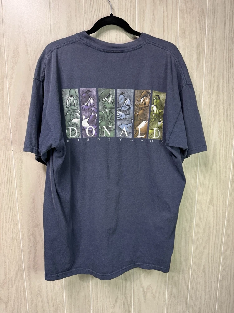 This Walt Disney Designs graphic T-shirt features a vintage Donald Duck personality print in size XL. (041)
