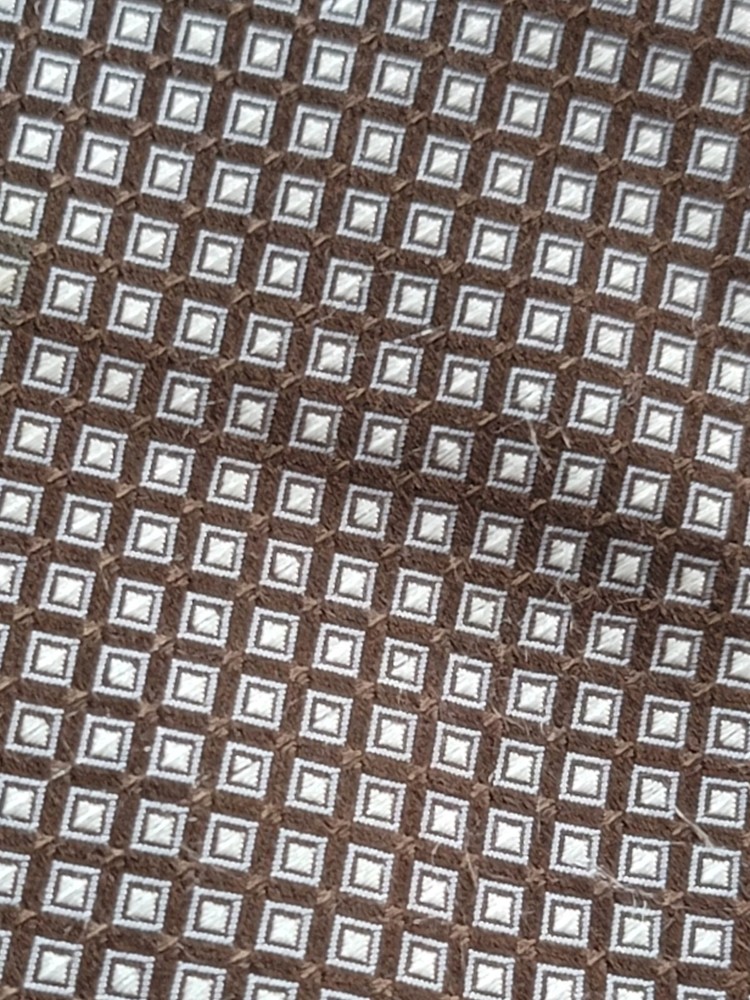 Elevate your formal look with this stunning Donald J. Trump Signature Collection silk tie. The brown and light blue checkered pattern adds a touch of sophistication, while the high-quality silk material provides a luxurious feel. This tie is perfect for any occasion and will complement any outfit. The tie is designed specifically for men and belongs to the Men's Accessories category. It is perfect for completing a formal outfit and will make you stand out from the crowd. This tie is made of high-quality silk material which ensures durability and longevity. Add this stylish tie to your collection and take your style to the next level. There is some wear. See photos