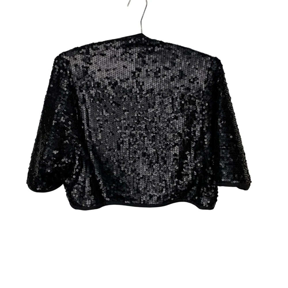 Donna Ricco Matte Black Sequined Bolero Shrug - Size L Short Sleeve Matte Sequins Cropped style Lined SIZE: L CONDITION: Excellent Used Condition MEASURMENTS: Bust: 17" Length (back of collar to hem): 18" *Consistent 5 Star Seller - Shipping M, W, F & SA *Feel free to Send me an OFFER - All Reasonable OFFERS Welcome! *From a Smoke-Free/Pet Friendly Home *Check out my closet for other similar sizes & don't forget to BUNDLE for more Discounts!! TAGS: Donna Ricco Matte Black Sequined Bolero Shrug - Size L Black sequined bolero Matte sequin shrug Donna Ricco cropped jacket Cropped formal bolero Short sleeve evening shrug Lined black bolero jacket Sequined formal jacket Cocktail party bolero Elegant sequin shrug Cropped sequin cover-up ophisticated holiday shrug Classic black bolero Maximalist evening bolero NYE sequin jacket Vintage-inspired shrug Wedding guest bolero Luxe sequin cover-up Formal cropped shrug Glam evening jacket Demure party bolero Holiday party shrug Special event cover-up New Year’s Eve jacket Wedding bolero jacket Gala-ready shrug Awards event bolero Christmas party outfit jacket Red carpet inspired shrug Festive layering bolero Metallic trend bolero