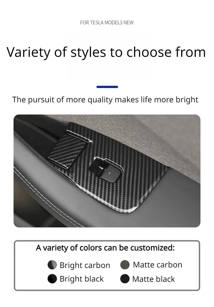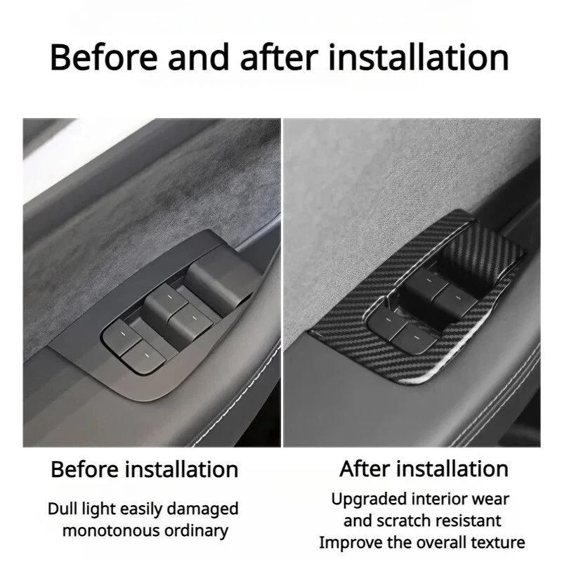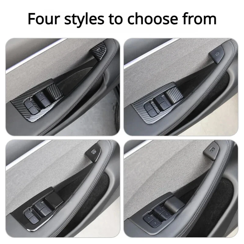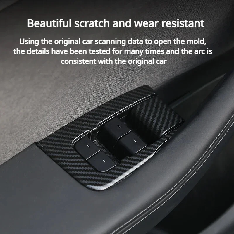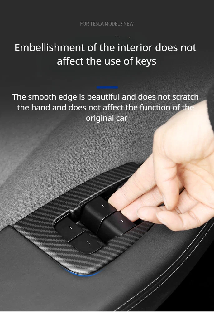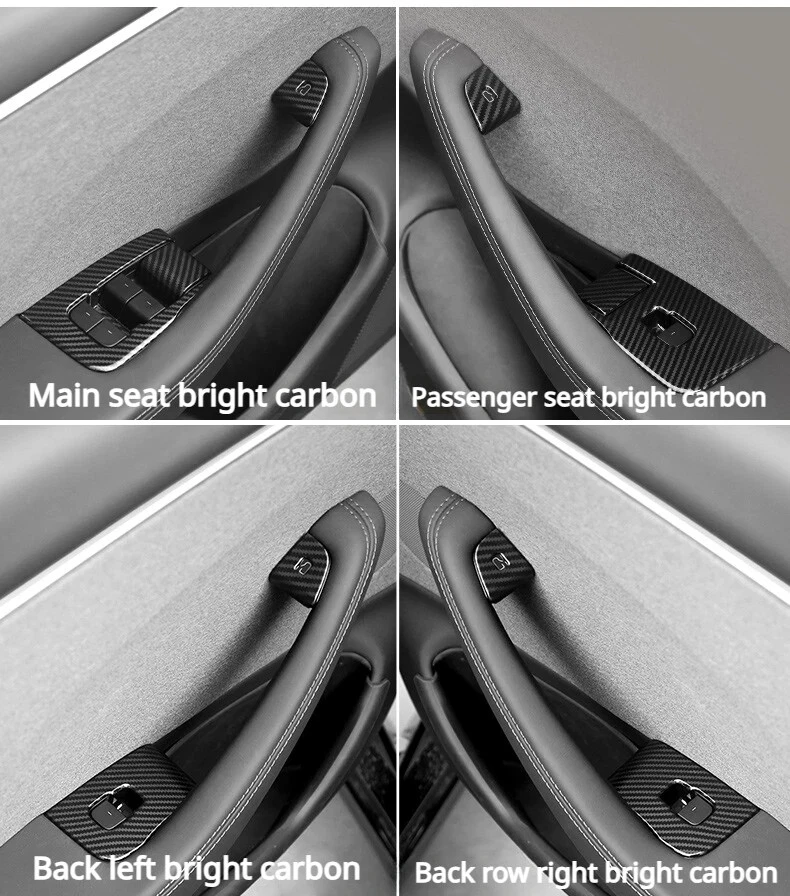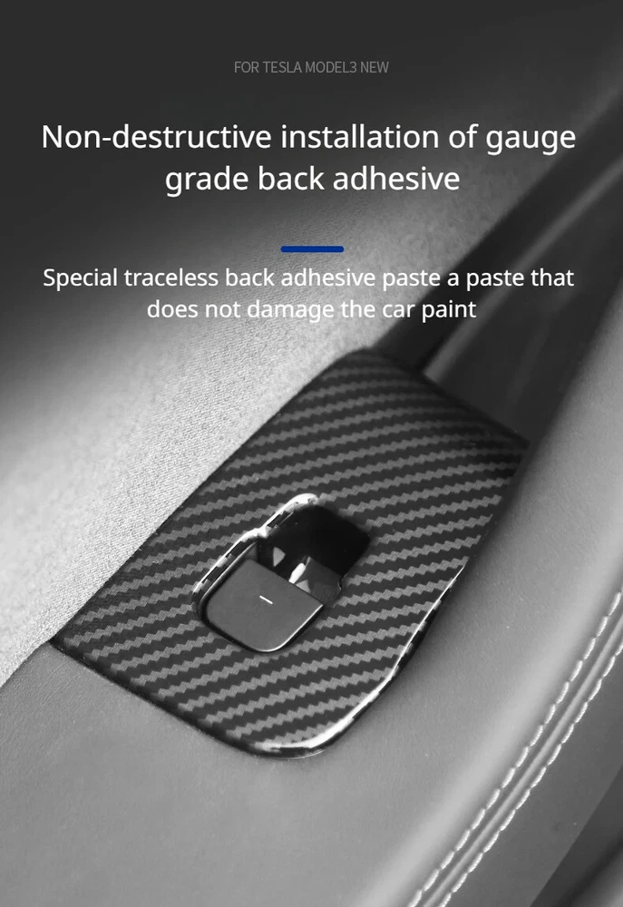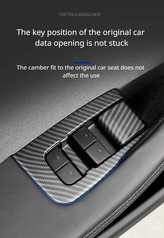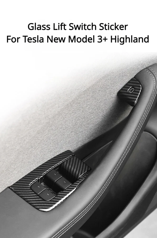Door Window Glass Lift Button Patch Trim Cover Stickers for Tesla New Model 3+ Highland 2024 Sticker Car Decoration Accessories Note: The left rudder can only be used and the right rudder cannot be used.