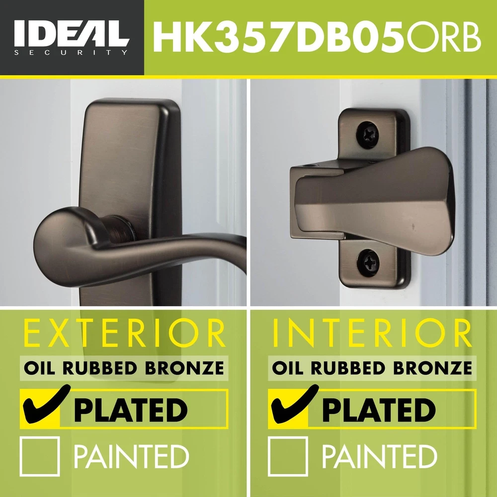 This deluxe storm door hardware set includes an elegant lever handle, an interior latch, and a deadbolt. It is with most pre-installed handles and complements a wide range of décor styles. The elegant and easy-to-operate handle replaces the basic push-button handle that may already be on your screen door. The interior latch features an easy opening push movement. The long-lasting finish will provide an added touch of class to any storm door. This set includes everything needed for an easy installation. When replacing an existing handle, the screw posts for the handle must be 1-3/4” apart. For new installations, three additional holes are required to be drilled through the door for the screws and spindle. The lock can be installed above or below the handle, depending on your preference. The spindle for the deadlock may be cut for your particular installation. Before drilling, ensure that the inside latch and lock do not interfere with the operation of your main door handle. If they do, raise or lower the storm door hardware. has been supplying quality hardware to door manufacturers for 65 years. Please explore our other door and window hardware products for your home. Elegant Upgrade: This stylish door handle and inside latch replaces any standard storm door handle set; the matching keyed deadbolt adds both curb appeal and to your home Popular Handle: This storm door handle is with most pre-installed surface mount handles and locks, it does not replace any other mortise handle sets Convenient Design: This lever handle should work with most out-swinging storm or screen doors; the package includes hardware (spindles and screws) for doors from 1 to 2-1/8" thick Installation: A 3/8” deep hole must be chiseled into the door jamb for the deadbolt; when replacing an existing handle, screw posts for the handle must be 1-3/4” apart Package Includes: GL lever handle, SK357 interior latch, deadbolt, as well as all components and hardware