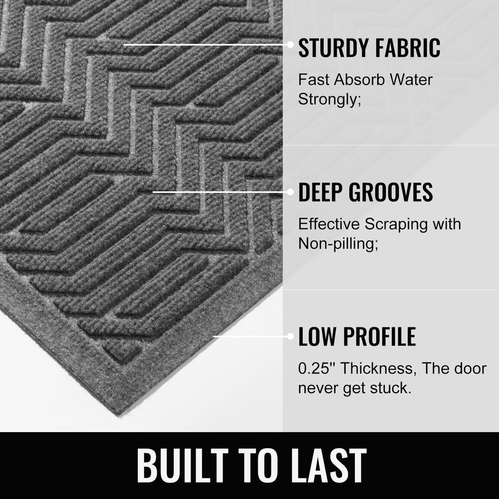 Door Mat Indoor Entrance, Sturdy Front Door Mat Outdoor, Absorbent Muddy Dirt Resist Welcome Door Mats, Non-Slip Backing Entry Mat Doormat for Entryway, Fade and Stain Resistant, 36x24 Inch, Grey Product Details Size: 36" x 24" Color: Light Grey Brand: BEHERO MPN: Does not apply UPC: Does not apply EAN: Does not apply Brand: BEHERO Size: 36" x 24" Material: Polyester, Polypropylene, Rubber Weave Type: Hooked Item Weight: 3.6 Pounds Brand: BEHERO Size: 36" x 24" Material: Polyester, Polypropylene, Rubber Weave Type: Hooked Item Weight: 3.6 Pounds Pile Height: 0.3 Construction Type: Machine Made Back Material Type: Rubber Color: Grey Indoor/Outdoor Usage: Indoor Theme: Christmas, Winter, RV, Welcome, Season, Thanksgiving, Fun Is Stain Resistant: Yes Product Care Instructions: Machine Wash, Hand Wash Only Pattern: Geometric, Gingham, Checkered Shape: Rectangular Special Feature: Absorbent, Fade Resistant, Quick Dry, Stain Resistant, Non Slip Room Type: Entryway, Laundry Room, Kitchen, Home Office, Hallway Product Dimensions: 36"L x 24"W Rug Form Type: Doormat Style: Art Deco, Country, Vintage, Shabby Chic, Modern Occasion: Christmas, New Year, Housewarming, Halloween, Thanksgiving Item Thickness: 0.3 Inches Warranty Type: Lifetime Water Resistance Level: Water Resistant Is Autographed: No Seasons: spring, summer, autumn, winter Recommended Uses For Product: Entryway, Patio, Porch, Kitchen, Garage, Deck, Pet Entry, High Traffic Areas Item Weight: 3.6 pounds Date First Available: September 4, 2024 Doorstep Cleaner: BEHERO door mat is made of absorbent polypropylene fabric, with deep groove design lead to capture moisture and dirt from shoes effectively. Keep your doorway clean and tidy and protect your home from dust starting with this entrance mat Practicality and Safety First: BEHERO front door mat make up from natural rubber, which offers higher tensile strength, better tear resistance, better grip and less odour than other synthetic rubber or PVC backing. Kids and pets running around safely Stain and Fade Resistant: BEHERO indoor and outdoor mat surface is made of high density polyester fibre, absorbs water well and dry quickly at the same time. As outdoor mat features heat resistant, water resistant, color will not fade remain as new Easy to Clean: BEHERO welcome mat can be vacuumed, swept and shaken off the dirt. For a deep clean, rinse or machine wash it and hang the matt in a ventilated place. Save time on cleaning to ensure that doormat stays clean and tidy to welcome guests Long Time Using: You may get tired of looking at this door mat indoor entrance because it last too long time. Entryway rug make up from high quality material with moisture-proof , wear-resistant, cold-resistant suitable for all seasons and weather