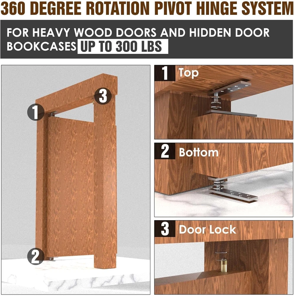 Store New Arrivals Add to Favorite View Feedback Contact Door Pivot Hinges Heavy Duty Hinges for Max 300 Lb Wood Doors & Hidden Door Bookcase & Secret Door,360 Degree Rotation Description Item model number Pivot Hinges Part Number Pivot Hinge Heavy Duty Batteries Required? No Finish Unfinished Mounting Type Door Mount Pattern Type Heavy duty Material Stainless Steel Country of Origin China Item Weight 1.2 pounds Batteries Included? No Maximum Weight Capacity 300 Pounds Finish Type Unfinished Weight Limit 300 Pounds Number Of Pieces 1 Stainless Steel: The pivot hinge is made of thickened stainless steel, strong load-bearing capacity, water does not rust, outdoor application. It supports heavy and wide doors with ease and stability Invisible Door: Use this pivot hinge to add a touch of mystery and elegance to your space. You can create a hidden door that rotates 360 degrees.Great for Bookcase Door, Bookshelf Door, Cabinet Door, Panel Door and etc Smooth Rotation: Ball bearing structure can ensure the door rotates smoothly at 360° Load-Bearing: The hinges for doors heavy duty supports around 300 pounds.(the floor bears the full weight of the door rather than door hinges Note: The installation is not very easy and does takes some time Installation Steps: ABOUT US We offer the best prices around on high quality products. Our E-store includes media such as books, movies, music and games while offering electronics, toys, sporting apparel, clothing, tools, general home, garden items and more. SHIPPING We are always working hard to ensure your package arrives as soon as possible. Please understand that some factors like weather, high postal traffic, and the performance of shipping companies are outside of our control. We offer free shipping to the lower 48 states and ship within 2 business days of payment, usually sooner. We do not accept P.O. Boxes. Please provide a physical address. For shipping outside of the continental USA, we only use eBay's Global Shipping Program.The item is shipped to KY and then sent to the rest of the world. International customers are responsible for all duties and taxes. Continue to check out in order to calculate costs for shipping the item to your country. Messages regarding eBay's Global Shipping Program MUST be directed at eBay EXCLUSIVELY. RETURNS We offer a 30-Day Return Policy on items which you are not completely satisfied with. You have the option for a full-refund or an exchange of the item. No returns are available on items shipped outside of the USA. PAYMENT We accept PayPal. CONTACT US This page content is yet to come Please ad us to your favorite seller and visit again later Thank You CUSTOMER SATISFACTION We try our very best to make sure every customer is completely satisfied. If there's a problem, message us! We're happy to help. WE ACCEPT Copyright © 2021 AutoDS. | All Rights Reserved