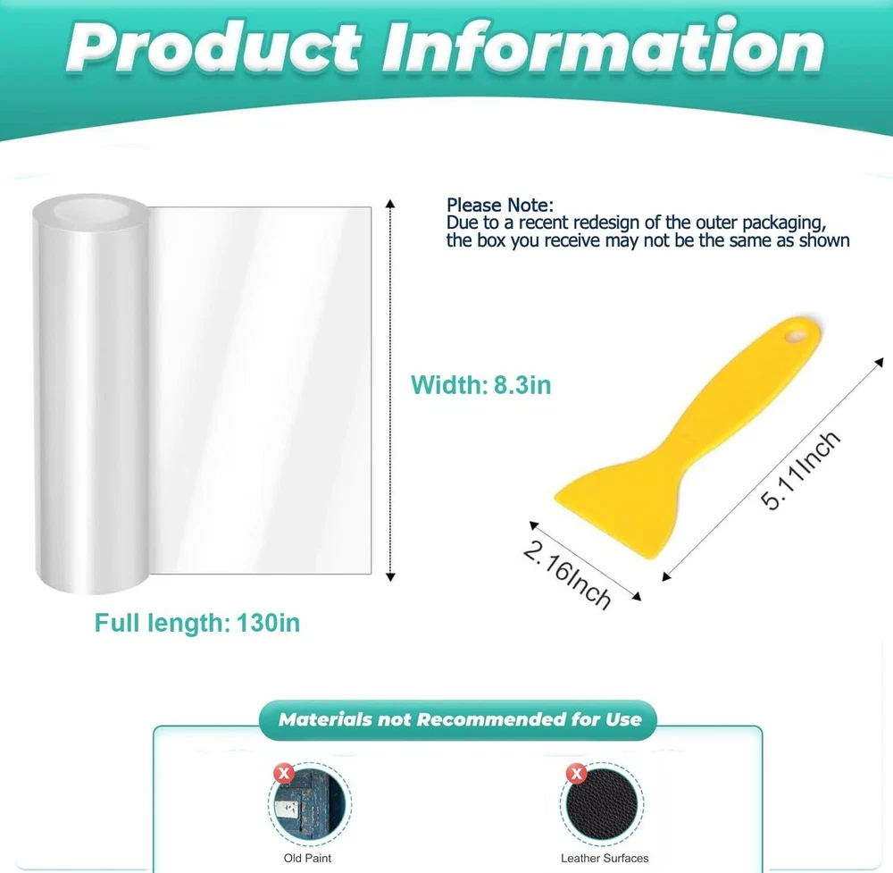 Protect Your Furniture from Pet Scratches. ’s high-quality protectors ensure your cherished pieces stay pristine. Trust in our durable solutions to guard against everyday wear and tear from your furry friends. Choose for peace of mind and a beautiful home. Packaging Includes: A large roll of anti-scratch furniture protector tape, measuring 130 inches by 8.3 inches and 0.45mm thick, along with a scraper. (Please note: Due to a recent redesign of the outer packaging, the box you receive may differ from the one shown.) Thick and Better Protection: Unlike other brands with a 0.06mm thickness, ’s clear single-sided sticky furniture protector is 0.45mm thick, providing superior protection against cat claws and preventing your expensive couch from being shredded or scratched. Flexible to Go Around Furniture: Made from high-quality, soft vinyl, this couch protector is flexible enough to wrap around both flat and curved furniture, ensuring full protection. Multi-Use: Suitable for use on couch corners, sofas, mattresses, cabinets, wood door frames, table legs, screens, and more (not recommended for aging walls or leather). It helps train cats and dogs to stop scratching by eliminating the sensation of claw sharpening. Invisible: The 100% clear anti-scratch guard blends seamlessly with any color door. Simply wipe with a damp cloth to clean. The smooth surface ensures that pets’ paws slide down easily, effectively protecting your door. Three-Minute Installation: Installing cat furniture protectors is very easy. Just aim at the desired spot, stick the pad where you want to protect, with no complex steps or tools required. Excellent Service: We’re confident you’ll love these innovative anti-scratch door guards for keeping your doors protected and quiet. If you’re not completely satisfied, please reach out to us right away, and we’ll be happy to help.