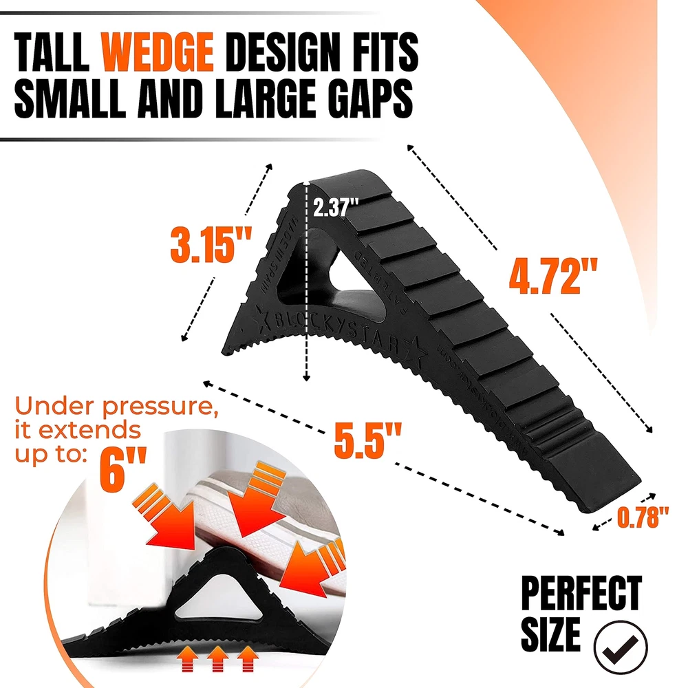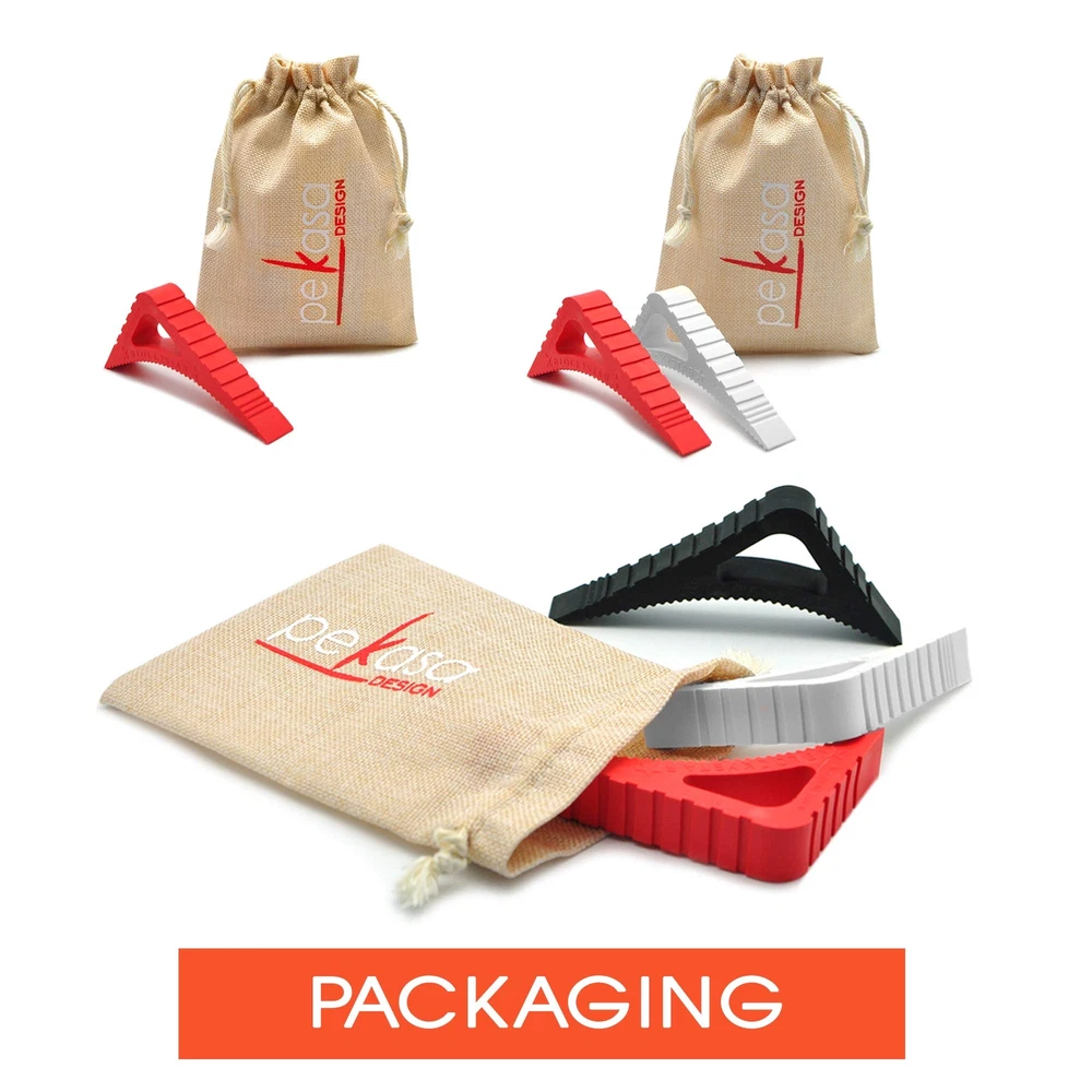 Pekasa Door Stopper is perfect for any home. It is made of durable flexible rubber that will stop and hold your door or window from closing. It can be easily shaped to fit in all spaces where it can be used. No tools, glue or drilling are necessary for its installation and use. It can be placed and removed easily. It's suitable for any type of floor surface like wood, carpet, concrete, marble, vinyl and it can be used indoors or outdoors. This fun and cute door stopper has an Award Winning triangular shape, that is very flexible, and has all 3 sides indented with small notches in order to allow it to fit in most door heights, most door hinges and window frames which make it a very versatile product to have in your home or office. This unique door jam has many uses and is like nothing you have had in your house before. You can use it on doors to keep them from closing, door hinges to prevent them from shutting, window frames to keep them open, and also on your door handles to keep them from hitting and damaging walls and furniture. This door stop is made from lead free rubber that is very strong which allows it to convert and twist into a lot of different positions so that it can be long-lasting and resistant through time and use. It is also washable. Actual item color may vary from the color of the picture. This is available to purchase in 1, 2 or 3 unit packs. Doorstops wedge available in multiple colors - you can purchase large door stop in 12 colors: Black, Smokey Gray, White, Dark Blue, Canary Yellow, Coral Red, Gold Sand, Hot Pink, Lime Green, Papaya Orange, Purple Punch and Sky Blue. DOOR STOP THAT WORKS - This high end decorative door stopper is made from durable, flexible and strong rubber that will last a long time. The size of this doorstop will hold doors with clearances up to 1.5 in. May not work on all doors and surfaces MULTISURFACE DOOR JAM - These premium quality rubber door stopper wedge are perfect for most floors like tile concrete wood or carpet. Large door stop for heavy doors and tall door stopper. Door stops for carpet. May not work on all floor types. DECORATIVE DOOR STOPPERS FOR BOTTOM OF DOOR - This is not your typical traditional door holder, this is a premium modern colorful cute door stopper that will catch your eye and will look great in your home or office, or as a great gift idea MULTI-USE DOOR STOPPERS - This door stops for floor is great for any door, as you can use it in different ways due to its unique and different design. Can be used on doors, as a window wedge, hinges, sliding doors and handles to protect walls DOOR STOPPERS FLOOR PERFECT SIZE – Its triangular shape allows it to hold doors and windows due to its very unique size 4.72 x 0.78 x 3.15 inches. Free of Lead, BPA and Phthalates and it is odorless. 100% Customer Satisfaction if not satisfied SET OF 1, 2 OR 3 DOOR JAMMER - This large door stopper wedge is a great rubber door stopper and works as a heavy duty door stop or door wedge stopper. You can buy in packs of 1, 2 or 3 heavy door stopper (door wedge yellow) DOORSTOPS WEDGE AVAILABLE IN MULTIPLE COLORS - You can purchase large door stop in 12 colors: Black, Smokey Gray, White, Dark Blue, Canary Yellow, Coral Red, Hot Pink, Lime Green, Papaya Orange, Purple Punch, Sky Blue and Vanilla Creme WORKS AS A WINDOW WEDGE STOPPER - our large door stopper works perfectly as a window wedge window stop. This rubber window stopper will work great to keep your windows opened.