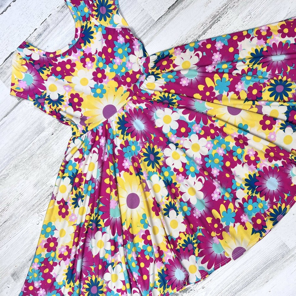 This Dot Dot Smile twirl dress is sure to make any girl shine. It's perfect for any occasion and features a vibrant floral print that will make your little one stand out in the crowd. Soft and comfortable, with a cap sleeve. Size 8-10 96% Spun Polyester, 4% Spandex Very good used condition. No flaws. Smoke free home. Pet friendly.