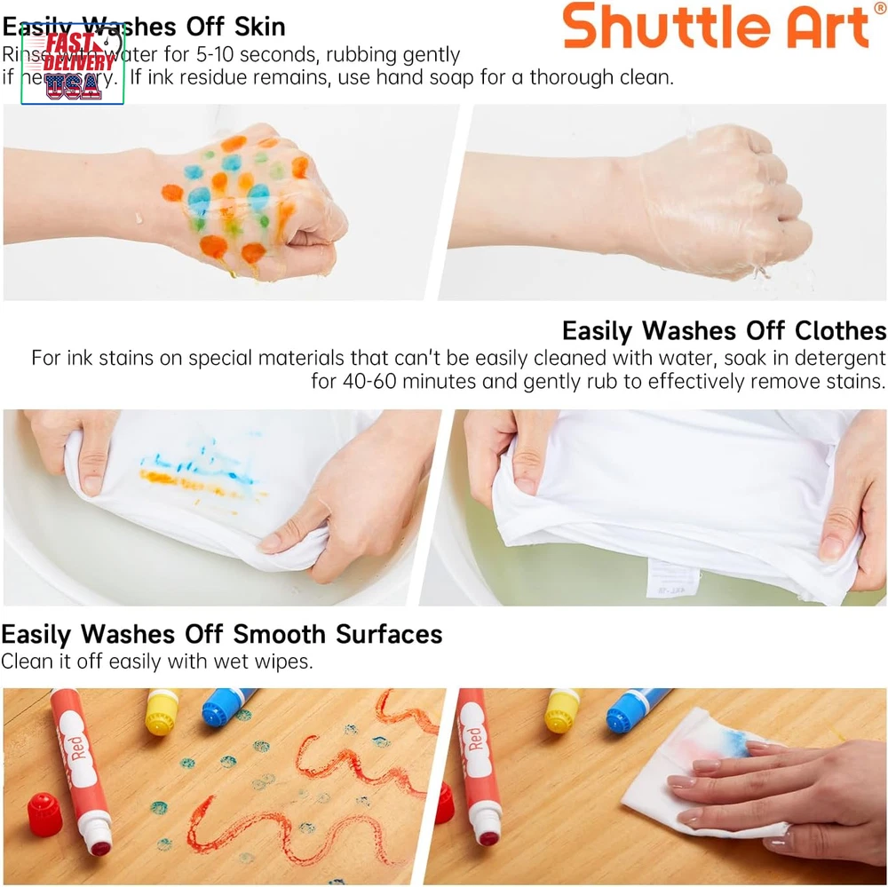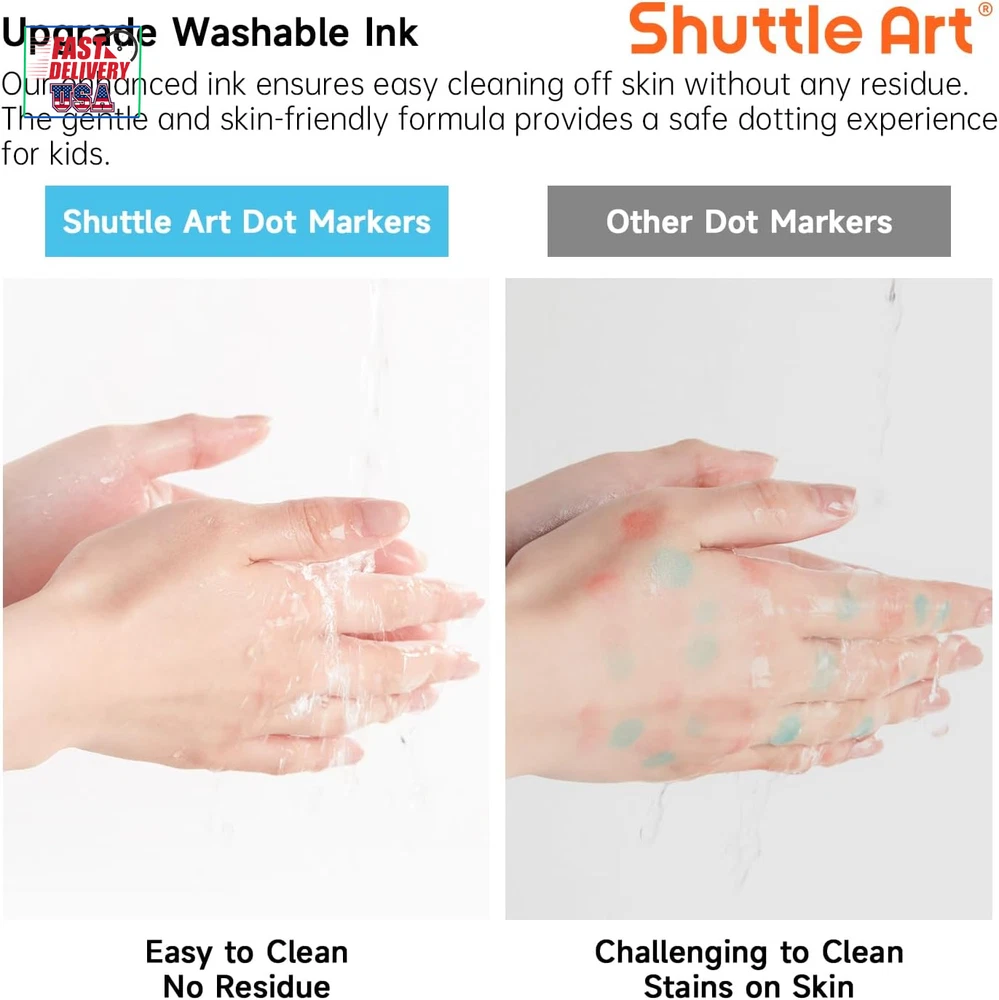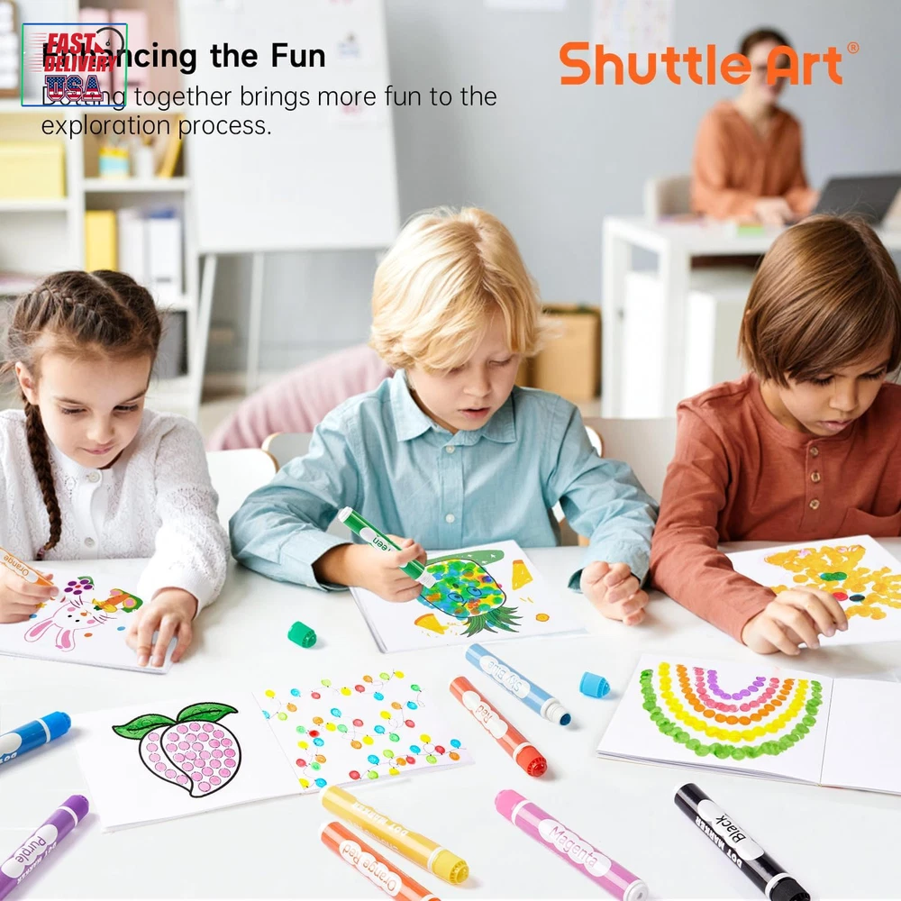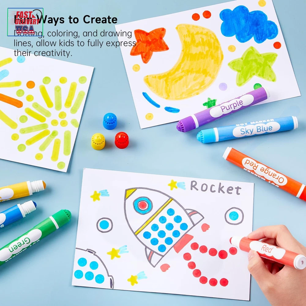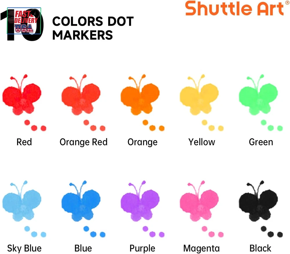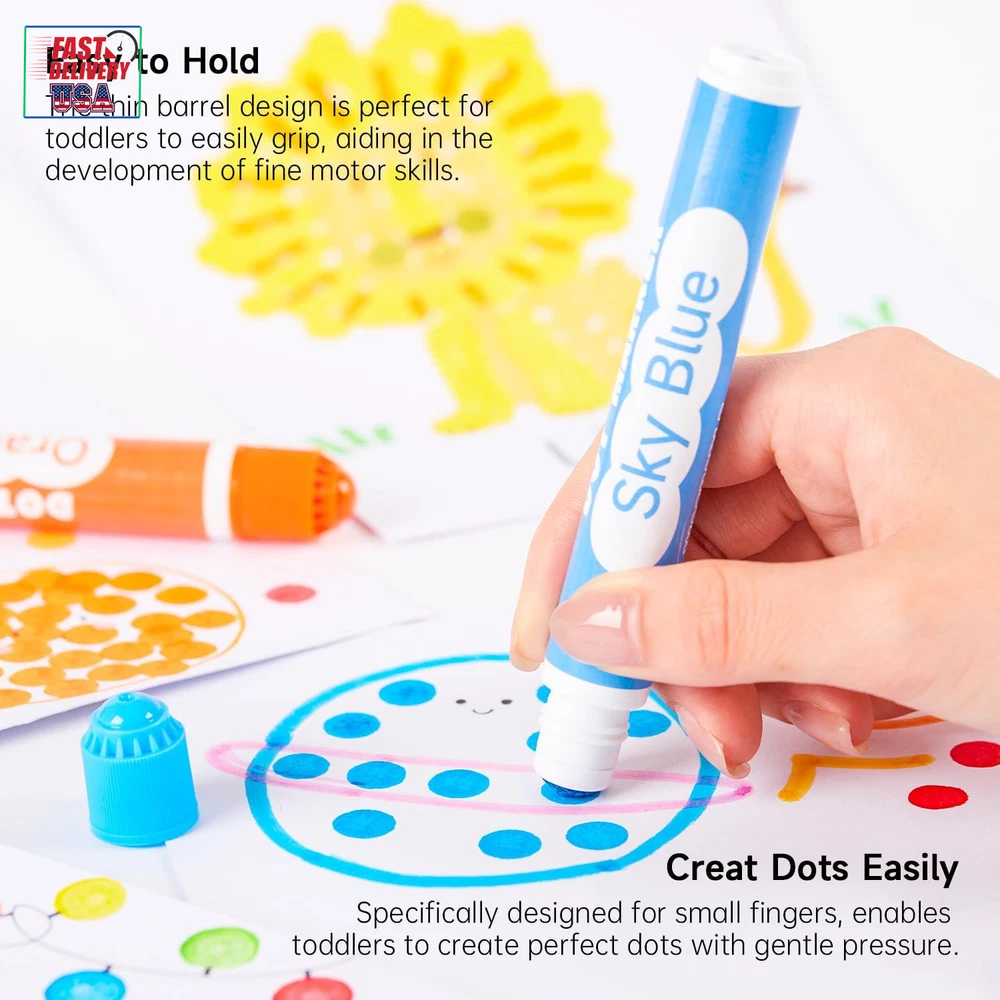 Store New Arrivals Add to Favorite View Feedback Contact Dot Markers, 10 Colors Washable Markers for Toddlers,Bingo Daubers Supplies Kids Preschool Children, Non Toxic Water-Based Description Closure Snap Item Weight 8.1 ounces Number of Items 10 Color 10 Colors Material Type Body: Plastic, Tip: Felt or Fiber Line Size 0.42 OZ Manufacturer Part Number SADM-S10 Ink Color 10 Colors Recommended Uses For Product Coloring, Drawing Point Type Medium Product Dimensions 0.67 x 5.02 x 6.97 inches Size 1 Count (Pack of 10) 10 AMAZING FUN COLORS: This dot markers set contains 10 vibrant colors: red, orange-red, orange, yellow, green, sky blue, blue, purple, magenta, and black. The wide range of colors allows kids to unleash their creativity and imagination while drawing WASH UP EASILY: If your child accidentally gets ink on their hands or clothes, don't worry! Cleaning up is a breeze. Simply rinse with water and gently rub if needed. For stubborn stains, use hand soap or detergent for a thorough clean NON-TOXIC & ACID-FREE: These dot marker pens are completely safe for kids. We use non-toxic, acid-free ink that is gentle on the skin. The dot markers' materials conform to ASTM-D4236 standards FIT FOR SMALL FINGERS: Featuring 0.42 oz bottles, Shuttle Art dot markers are lightweight and easy for toddlers to grip. Designed to fit small hands, these markers are effortless for kids to hold, mix, and blend colors to create their masterpieces SERVICE GUARANTEE: Your satisfaction is our top priority, please rest assured to purchase our products. If you are not satisfied with our products or have any questions, please feel free to contact us at any time Product Description 1 MARKERS 2 PEN 3 PENCILS 4 PAINT 5 SCHOOL & OFFICE EASY GRIP & VIBRANT COLORS Easy to Hold Perfect for little hands to comfortably grip and create. 10 Vibrant Colors Unleash kids' creativity with our dot markers, which are mess-free and feature washable ink. CREATIVE DOTTING & GAMES Innovative Dotting Creating unique and mesmerizing patterns with every dot. Game Play Ideal for engaging bingo games and endless fun. Dot markers Comparison Add to Cart Add to Cart Add to Cart Add to Cart Add to Cart Add to Cart Customer Reviews 4.5 out of 5 stars 2,006 4.2 out of 5 stars 1,106 4.1 out of 5 stars 63 4.6 out of 5 stars 1,366 4.5 out of 5 stars 2,323 4.5 out of 5 stars 2,006 Price $8.99 $ 8 . 99 $10.99 $ 10 . 99 $14.99 $ 14 . 99 $14.99 $ 14 . 99 $17.99 $ 17 . 99 $21.99 $ 21 . 99 Accessories 135 Unique Patterns PDF 135 Unique Patterns PDF None 20 Patterns Activity Book 20 Patterns Activity Book 20 Patterns Activity Book Washable ✔ ✔ ✔ ✔ ✔ ✔ Non-toxic & Acid-free ✔ ✔ ✔ ✔ ✔ ✔ Volume 0.42 oz/12 ml 0.42 oz/12 ml 0.42 oz/12 ml 1.33oz/40 ml 1.33oz/40 ml 1.33oz/40 ml Colors 10 Colors 15 Colors 15 Glitter Colors 14 Colors 12 Colors 14 Colors ABOUT US We offer the best prices around on high quality products. Our E-store includes media such as books, movies, music and games while offering electronics, toys, sporting apparel, clothing, tools, general home, garden items and more. SHIPPING We are always working hard to ensure your package arrives as soon as possible. Please understand that some factors like weather, high postal traffic, and the performance of shipping companies are outside of our control. We offer free shipping to the lower 48 states and ship within 2 business days of payment, usually sooner. We do not accept P.O. Boxes. Please provide a physical address. For shipping outside of the continental USA, we only use eBay's Global Shipping Program.The item is shipped to KY and then sent to the rest of the world. International customers are responsible for all duties and taxes. Continue to check out in order to calculate costs for shipping the item to your country. Messages regarding eBay's Global Shipping Program MUST be directed at eBay EXCLUSIVELY. RETURNS We offer a 30-Day Return Policy on items which you are not completely satisfied with. You have the option for a full-refund or an exchange of the item. No returns are available on items shipped outside of the USA. PAYMENT We accept PayPal. CONTACT US This page content is yet to come Please ad us to your favorite seller and visit again later Thank You CUSTOMER SATISFACTION We try our very best to make sure every customer is completely satisfied. If there's a problem, message us! We're happy to help. WE ACCEPT Copyright © 2021 AutoDS. | All Rights Reserved