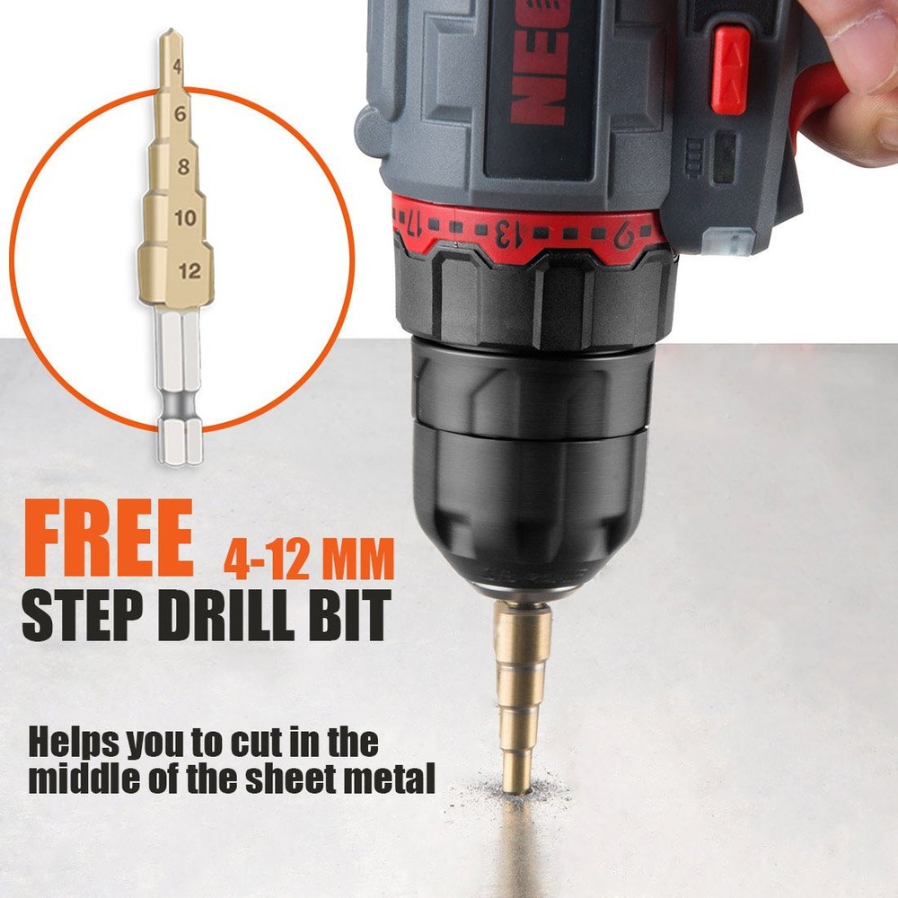 Cutting sheet metals will never be the same with professional nibbler. It's light, compact and sleek. Powered by a standard drill between 1500-3000 RPM, just simply insert the drive shaft in the chuck of your drill and tighten the chuck, exactly like putting in a drill bit. when you start up the drill and the nibbler will be ready to cut. It will be a big time saver for cutting sheet metal and corrugated metal roof sheets. the 360 degree adjustable cutting head allows easy control and has no problem handling any curve or straight you throw to it. Versatile cutting round accessories helps you to easily cut straight and round .Also the iron tool box which holds all parts in helps you no worry to carry them anywhere or lose any Easy and fast to cut 14 gauge material and creates a precision, burr free edge 360 degree double cutting head to cut straight line, curve line and circles HSS cutting blades to cut including but not limited to: Sheet metal, corrugated material, pipes, complex profiles, powder coated material, stainless steel, copper, aluminium, formica, plastic, fibreglass Fits any drill that works between 1500-3000 RPM, More easy and powerful than normal shears and snips