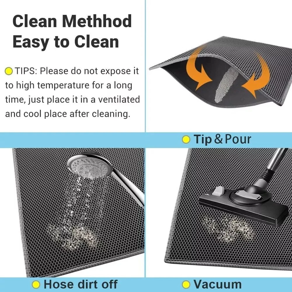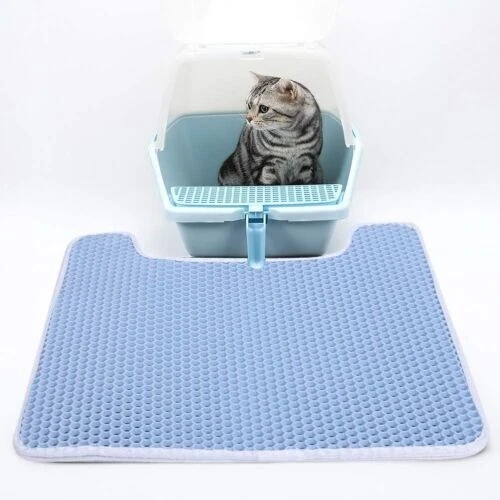 Keep your cat's litter box smelling fresh and clean with this Double Layer Cat Litter Mat. The mat is designed with a honeycomb pattern that helps trap litter and prevent it from spilling out. The second layer of the mat is made of soft and waterproof material that provides superior absorbency and odor control. This Litter Mat is perfect for all cat owners looking for a hassle-free cleaning experience. It is compatible with most litter boxes and is easy to install. The mat is made of high-quality materials and is built to last. Get your hands on this must-have cat litter mat today and enjoy a cleaner and fresher litter box for you and your feline friend.