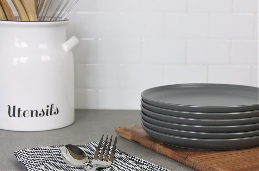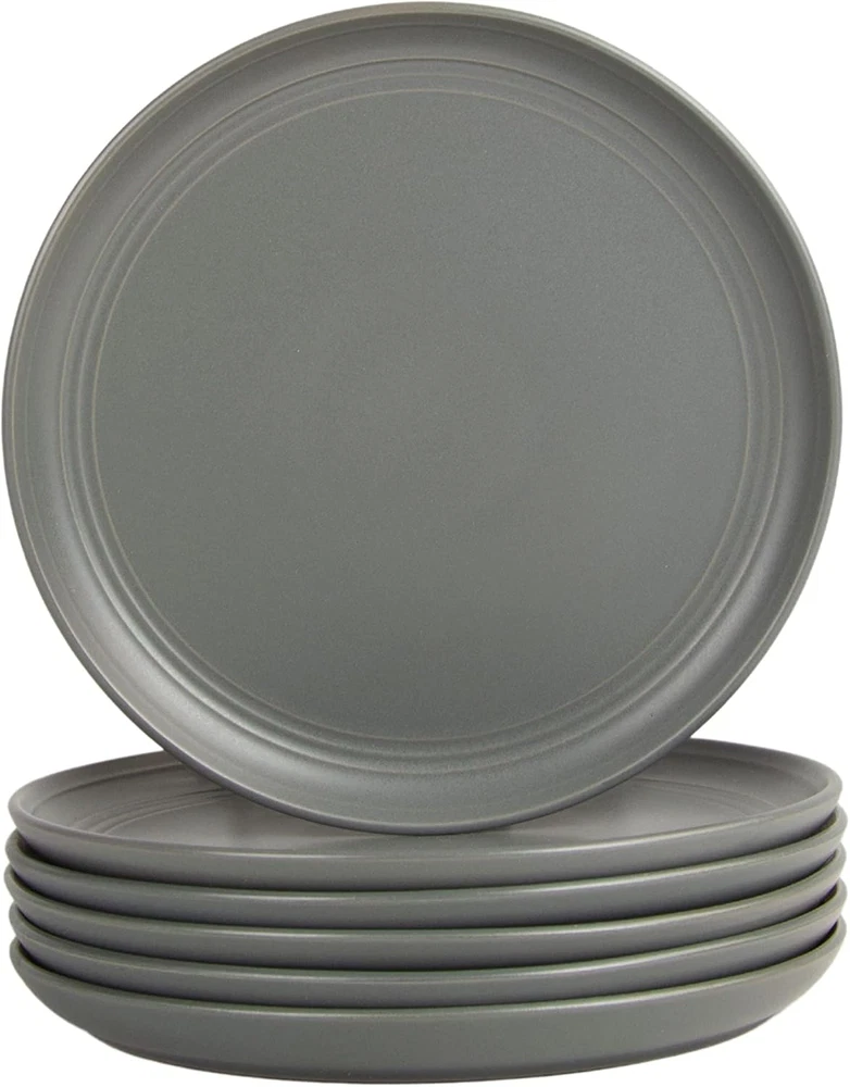 Set includes (6) 8.25" salad/dessert plates Subtle grooved detailing Made of Microwave & Dishwasher Safe Stoneware Banded together by a subtle yet sophisticated lined motif, the Double Line collection is sleek, modern, and adaptable. This versatile collection is dishwasher and microwave safe, and comes in a range of colors that can be playfully mixed and matched for endless fun, or combined with other patterns to elevate your tablescape.