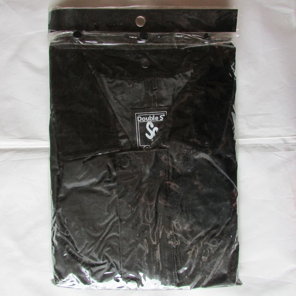 Brand new in package Brand: Double S by M&F Western Wear Color: Black Style: 12130 Saddle Slicker Rain Coat Poncho - Weatherproof PVC Shell - Storm Fly Front - Corduroy Collar - Rear Saddle Gusset - Draw String Waist - Protects Saddle & Rider - Detachable Hood - Full length