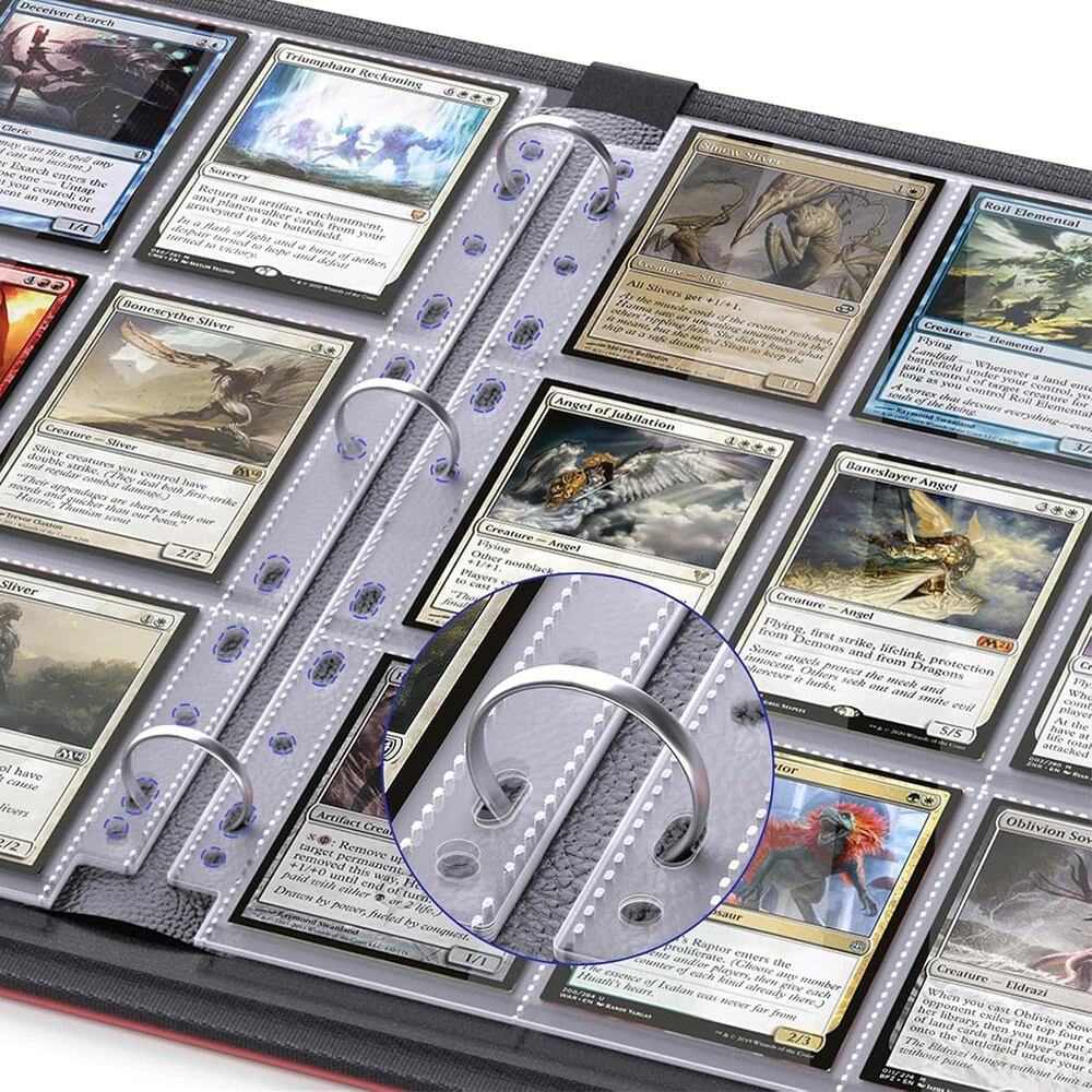 Product Description Features: Single-SIDED DISPLAY: Each page protector has 9 pockets, you can put two cards in one sleeve, suitable for card stock for 2/3/4 binder, organize and properly protect your card.Each pack contains 10 sleeves/pages, providing enough capacity to hold at least 90 cards in total. THICKENED 9 POCKET CARD SLEEVE: Our trading card sleeve pages is made of transparent high-quality plastic, acid-free, non-toxic, PVC-free, high transparency, can be used for a long time without bending. Thickness 0.1MM.Our inner pages are not thin double-sided loading, but thick single-sided loading. FITS STANDARD SIZES: Page Size: 8.8" x 11.4"/ 290x224mm. Pocket Size: 2.63 x 3.58 inches / 67x91mm.Great for standard size cards, Pokemon cards, coupons, game cards, business cards/trading cards/baseball/soccer cards. TOP LOADING DESIGN : Convenient and Fast - Very easy to reach,Cards will not fall as long as you keep the card protector flat or upright, perfect for card storage and display. Specification : Material : Plastic Outer size: 8.8" x 11.4"/ 290x224mm Pocket Size: 2.63 x 3.58 inches / 67x91mm Package included: 1 set/ 10 pcs x Trading Card Pages Sleeves