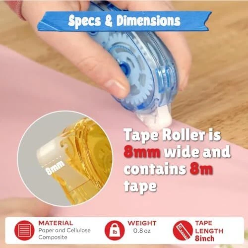 Immediate & Enduring Attachment: Scrapbook tape roller simplify the application of adhesive to any surface, ensuring a clean process. Compact, lightweight, and conveniently portable, they are perfect for on-the-go projects. Neat & Mess-Free Application: Contrary to liquid adhesives, these double-sided tape rollers offer a mess-free and residue-free application. They're convenient and straightforward, making them perfect for a range of settings such as schools, offices, and homes. Photo-Safe Scrapbook Tape: Keep your cherished photos safe in a scrapbook for lasting memories. Use our acid-free, photo-safe, archival-safe, and invisible double-sided adhesive tape runner to preserve your memories without damage. Quick, No Jams Applicator: Opt for double-sided craft tape for convenience and ensure smooth crafting with the top adhesive dot roller applicator. Compact & User-Friendly: Take this portable double-sided tape roller with a protective tip cover wherever you go. Perfect for school, gift-wrapping, scrapbooking, and home projects.