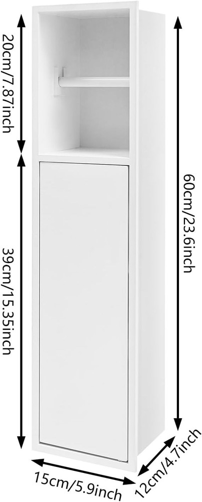 Recessed Toilet Paper Storage Cabinet β Modern and Durable Design for Your Bathroom Transform your bathroom experience with this stylish recessed toilet paper storage cabinet crafted from premium 304 stainless steel. Its built-in design elegantly maximizes wall space, allowing you to neatly store toilet rolls and other essentials, all while enhancing your home's decor. πβ¨ High-Quality Material : Constructed from robust 304 stainless steel for long-lasting durability. Smooth Edges : Protects your hands from scratches during installation and daily use. Convenient Built-in Rod : Features a stainless steel rod for easy toilet paper access. User-Friendly Mechanism : Magnetic push-release switch for effortless one-touch opening and closing. Versatile Application : Ideal for various spaces including bathrooms, kitchens, offices, and more. This elegant storage solution is not just functional but also a standout piece for any room. With its sleek modern style, it combines practicality with aesthetics. Store rolls of toilet paper, toiletries, and hygiene products in a way that elevates your space. Whether in a bathroom, kitchen, or office, it keeps essentials organized and within reach. Specifications : Style: Modern Color: White Material: 304 Stainless Steel Shape: Rectangular Process: Baking Paint, Nano-coating, Laser Seamless Welding Number of Tiers: 2 Number of Doors: 1 Installation Required: Yes (Built-in) Suitable Wall Hole Depth: > 12 cm / 4.7 in Max Load-bearing Capacity: 20 kg / 44.09 lbs Door Height: 39 cm / 15.35 in Plate Thickness: 0.8 mm / 0.03 in Height of Upper Tier: 20 cm / 7.87 in Overall Product Size: 15 Γ 12 Γ 60 cm / 5.9 Γ 4.7 Γ 23.6 in Package Size: 67 Γ 20 Γ 18 cm / 26.38 Γ 7.87 Γ 7.09 in Gross Weight: 2.5 kg / 5.51 lbs Net Weight: 2.38 kg / 5.25 lbs Whatβs in the Box : 1 Γ Recessed Toilet Paper Storage Cabinet Usage Tips : Ensure proper installation to support the maximum weight capacity. Use in multiple areas of your home for versatile storage solutions. Care & Maintenance : Wipe with a damp cloth for easy cleaning. Avoid abrasive cleaners to maintain surface finish. Upgrade your home with this functional and chic storage cabinet today! Keep your essentials organized while adding a touch of modern elegance to your space. π On Mar 30, 2026 at 03:19:40 PDT, seller added the following information: