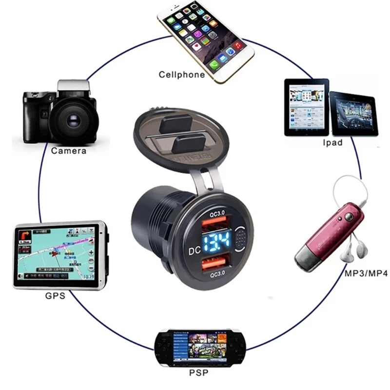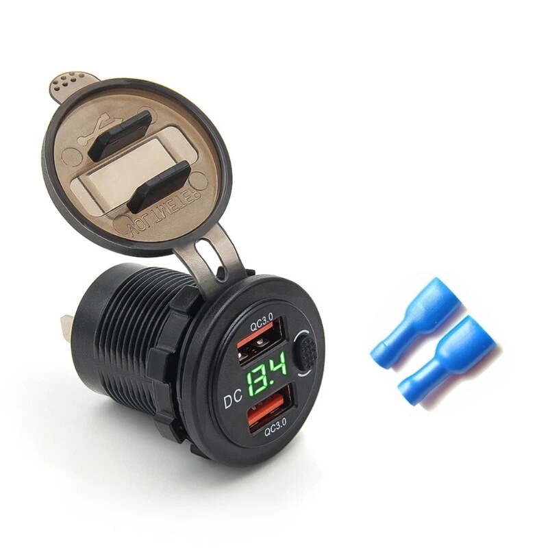 Double USB Car Socket with Real Time For Quick Power Features: fast charging with our double QC3.0 car socket, delivering up to 36W of power to simultaneously charges two devices, significantly reducing charging time. Designed with a built in voltmeter and materials, this USB fast ensures vehicle by levels and is for outdoor use, offering reliable performances in any weather condition. Featuring a user friendly independent and multiple protection mechanisms against overcurrent, overvoltage, and short circuits, this high temperature enhances your driving while safeguarding your devices. Input 12V-24VOutput Double QC3.0Operating temperature -40℃, maximumly 80℃Instructions+''to the positive poles''-''to the negative poles'' Product features: Flame retardant, high temperature resistance, corrosion resistance, durability and deformation resistance.Output 5V3A/9V2A/12V1.5A Specifications: Color:Redness LED/Green LED/Blue LED Component:PC+ABS Product installation: the installation position of the car to open the hole or keep the installation position. Disassemble the board, install the car and tighten the nut to the positive and negative poles of the car and fix the position of the car Package Includes: 1 Set Double USB Car Socket note: 1.Please allow 1-2cm errors due to manual measurement, make sure that you donot mind befores you order. 2.Due to the differences between different monitors, the picture may not reflect the actual coloring of the item. 3. The will display by connecting to the