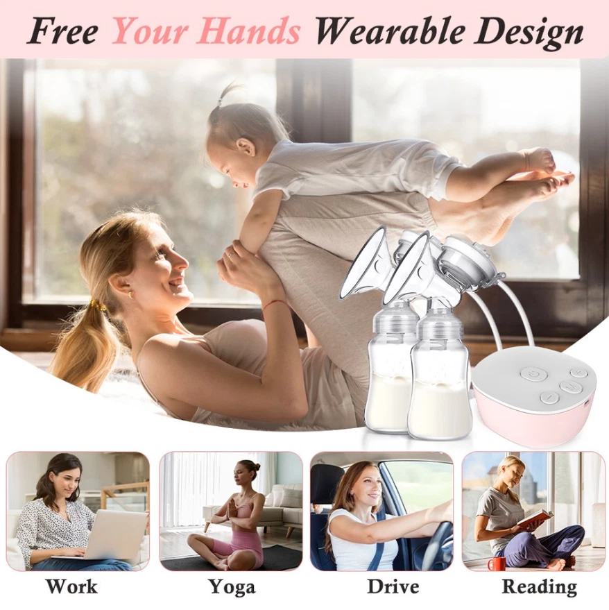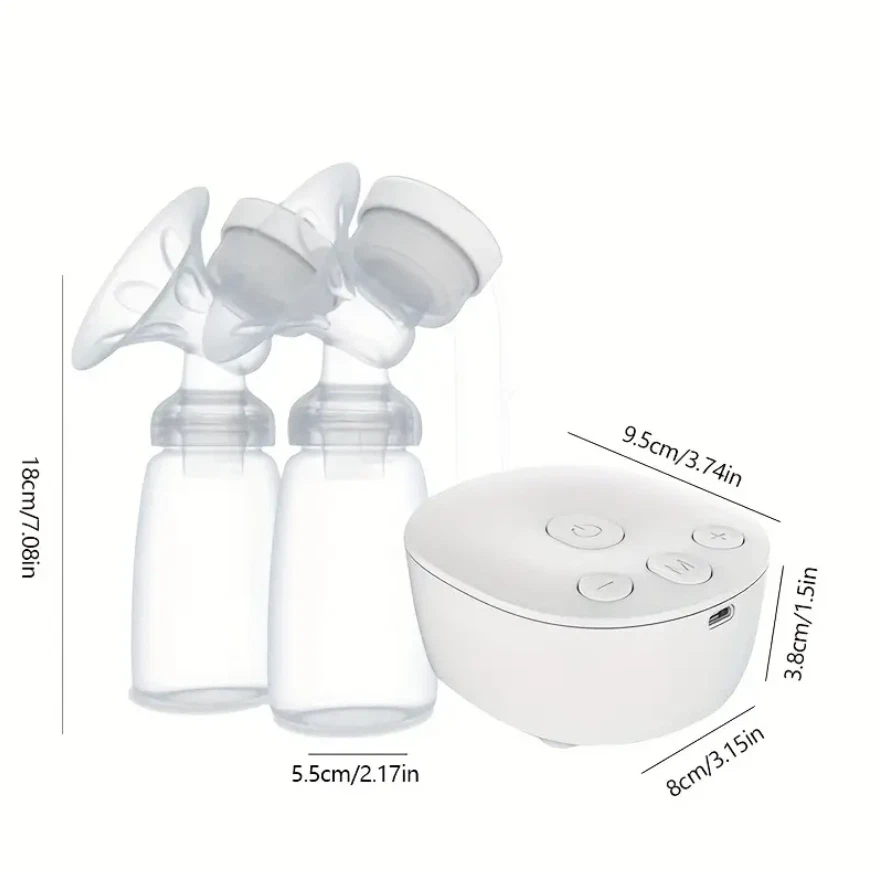 Efficient and Convenient: With 9-speed settings, this electric nursing breast pump allows you to customize the suction level to your comfort and maximize milk production. Double-Breast Design: Save time by pumping both breasts simultaneously with this double-breast breast pump. USB-Powered: No need to worry about finding an outlet, this breast pump can be powered by any USB port, making it perfect for on-the-go pumping. Silent Operation: Say goodbye to loud and disruptive pumping sessions with this silent breast pump. Easy to Clean: The breast milk bottle and pump parts are easy to disassemble and clean, ensuring a hygienic pumping experience. Description Electric silicone breast pump is an ideal breastfeeding tool for Moms. No noisy sounds, simple operation. The breast pump is made of food-grade silicone, not contain BPA, which is very safe. Massage-like suction, easy breast pumping! Features: Anti-Backflow, Anti-Overflow Dual-channel anti-backflow design, fully separated gas and liquid, will not pollute the host when overturned, milk will not be spilled and wasted, milk will not flow back, only up and down, long-term use, clean and pollution-free! Noise Free Performance Double electric breast pump is made with better craftsmanship. The baby won't be woken by the gentle milk sucking and low noise design of 40 dB. The electric breast pump has a longer battery life, and is easier to use. Mom can rest assure about baby sleep and use electric breast pump double freely. Ergonomics Technology 105°soft silicone breastshield, which conforms to the breast shape of most types of mothers, perfectly fits the breasts, allowing mothers to secrete breast milk in a relaxing and comfortable way. The breast pump has a soft edge that will not harm the skin and can be adjusted 360° to the most comfortable position. Give Mum more comfort and give babies more milk. Painless The electric breast pump has a soft edge and is made of food-grade soft silicone. Made of food-grade silicone and PP, it is skin-friendly, safe and BPA-free. It won't be painful while maintaining a good seal to get the best suction power. Breast pump can achieve effective pumping in a short time. It can save up to 50% of the time and produce 18% more milk. Easy to Clean The parts of the electric breast pump are easy to assemble and clean. Except for the electrical parts, all other removable parts are dishwasher safe. The pump is small size and portable, it's convenient to carry around, especially for mothers on work. Be Careful It is recommended to use automatic mode for the first time to gradually adapt the breast to suction. If the nipple is chapped or bitten by the baby, please do not use this product for the time being to avoid discomfort. Leaks? First of all, check whether the sitting posture is correct. The correct sucking posture is to sit sucking, lean forward 45 degrees, and keep the container upright after sucking.In addition, parts are also recommended to be replaced within 1 to 2 months. Pain? Solution: first check whether there are lumps in the breast? Is the nipple chapped?It is recommended to use the automatic gear first.And do not use too much force to connect the breast to the lowest position.In addition, it is recommended that the sucking time should not exceed 15 minutes. Specifications: Style: Double electric breast pump Material: PP, Liquid-silicone Gears: 9 gears for each mode Capacity: 150mlx2 Power Supply: USB Plug in Size: Host size: 9.35x8.15x4.05cm/3.68x3.21x1.59in, bottle size: 18x5.5cm/7.09x2.17in Package: Breast Pump host x1 Breast Bottle set x2 USB line x1 Health tips: 1. Wash hands before using a milk pump to milk 2. Breasts or nipples should stop milking when they feel pain 3. Do not put refrigerated breast milk and fresh breast milk together 4. After the defrosted breast milk is thawed, you baby can not finish drinking after 24 hours, please do not repeat the refrigerated breast milk Search keywords portable breast pump, baby buddha pump, breast pumps, wireless breast pump, breast pump hands free, electric breast pump, mom cozy pump, brestfeeding pump Electric Breast Pumps for Women Adjustable Mode& Suction Pain Free and Comfortable Fast USB Rechargeable Completely Closed System 3 Modes 9 Levels