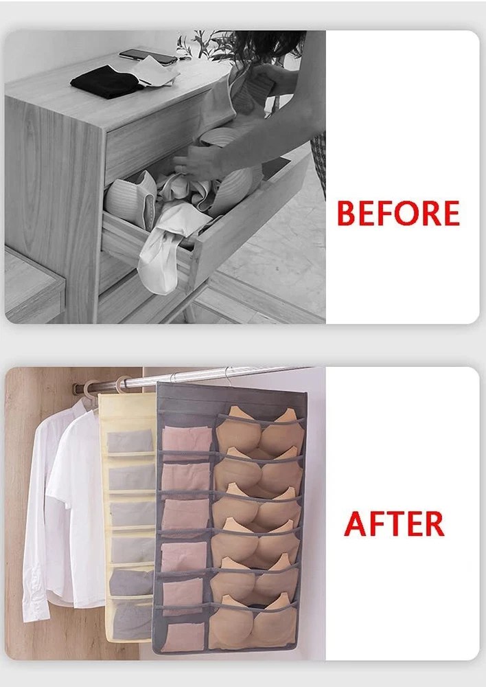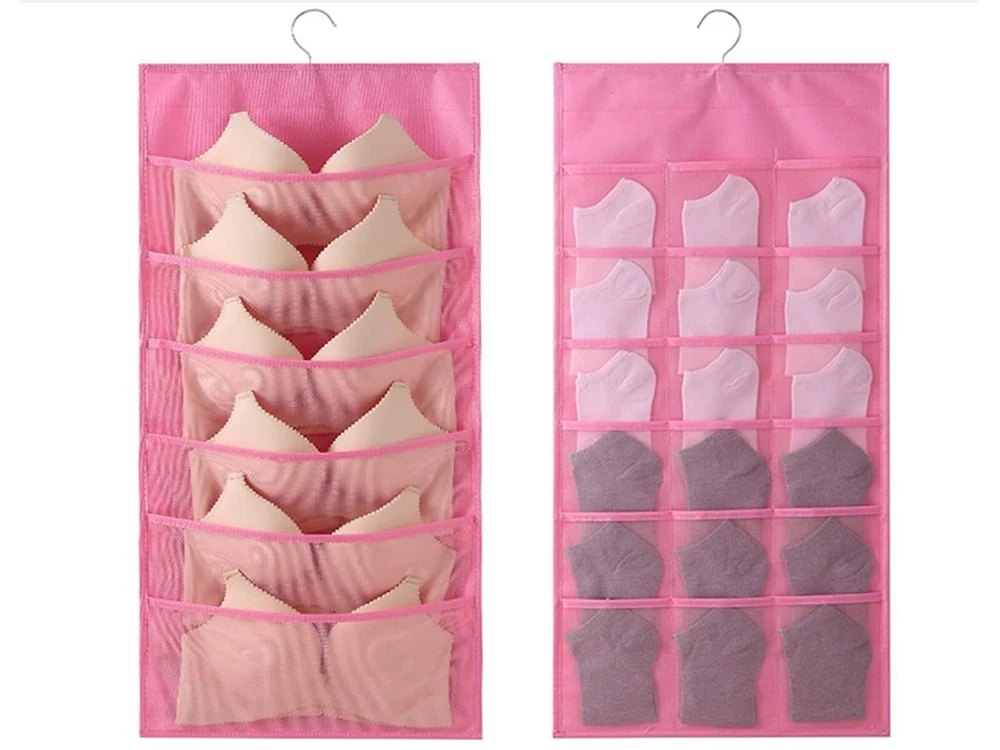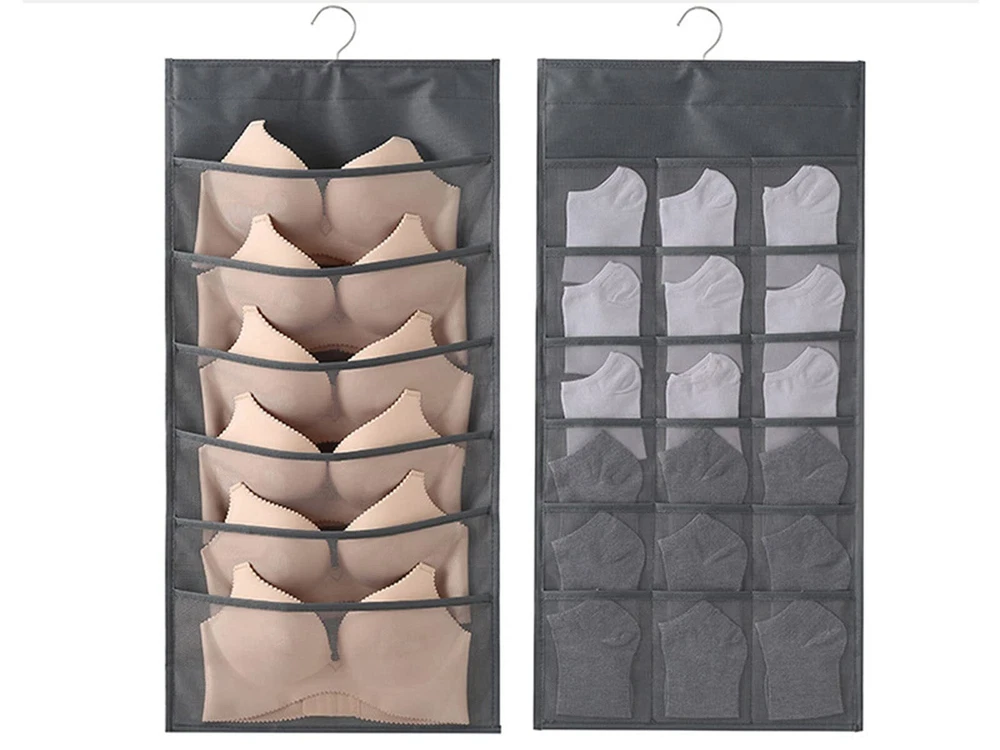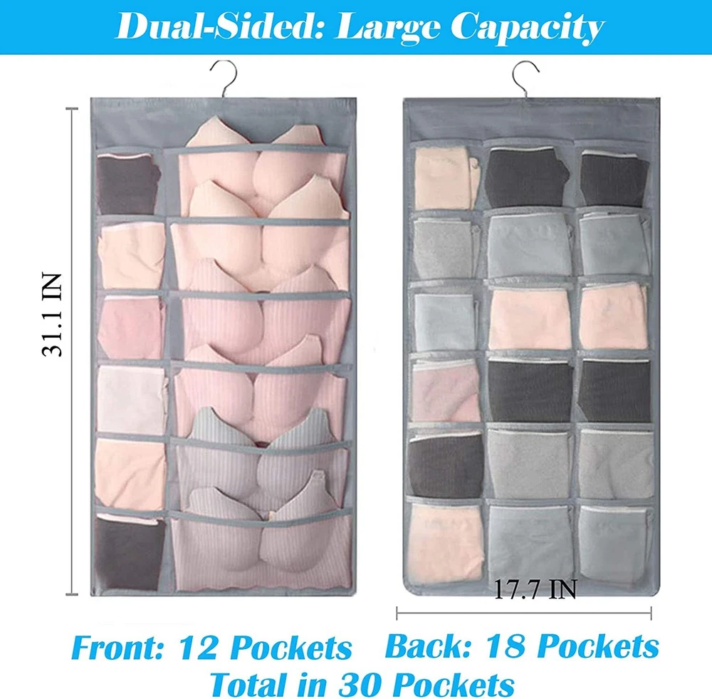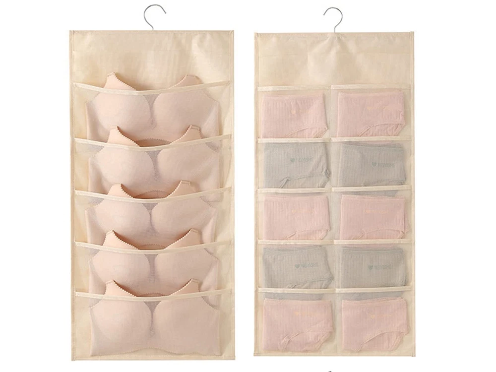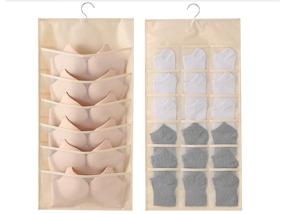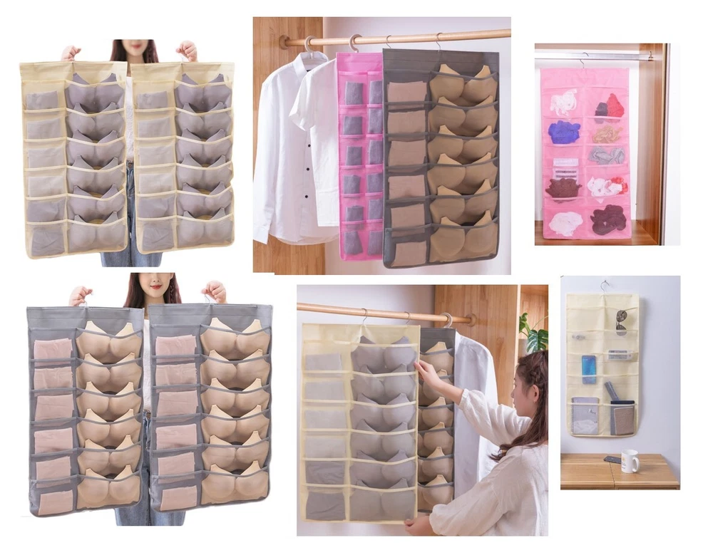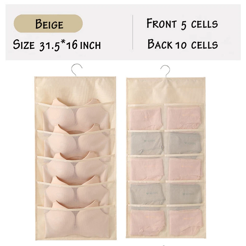 1.Eco-friendly and Durable Material: made of breathable nonwoven mesh cloth 2.Transparent, can make you see and find stuff easily. 3.Two-sided organizer, space saving. 4.Comes with a stainless-steel hanger. Hand wash, and it can dry in air quickly. 5.Versatile usage: you can hang this organizer in closet, laundry room, bedroom, storage room, dorm, travel RV etc. It will give you a cleaner space.
