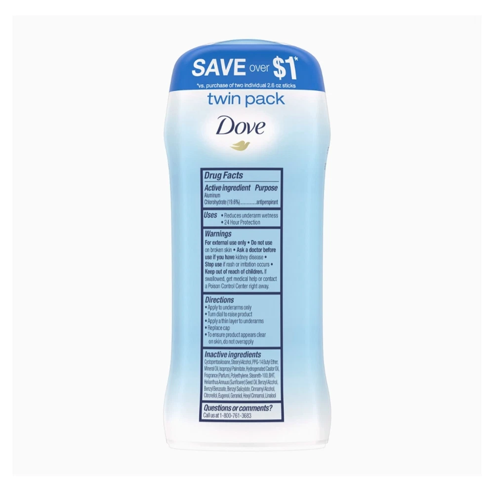 UPC: 079400519108 Product Line: Solid Antiperspirant Deodorant Stick for Women Features: Alcohol Free Size: Regular Formulation: Stick, Solid Type: Deodorant Country/Region of Manufacture: United States Department: Women Volume: 2.6 oz Skin Type: All Scent: Original Brand: Dove gtin13: 079400519108 MPN: Does not apply