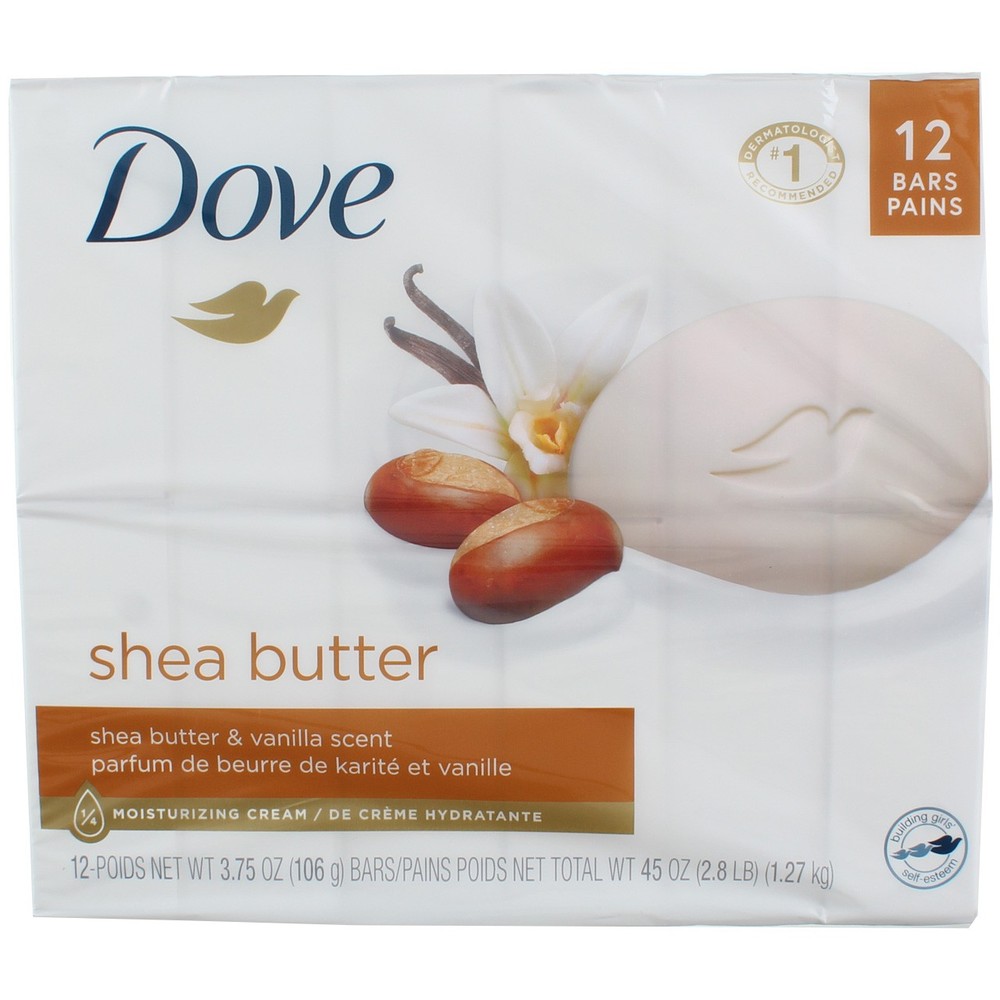 Dove Shea Butter Moisturizer Cream Bars, Shea Butter & Vanilla, 3.75 oz, 12 Ct