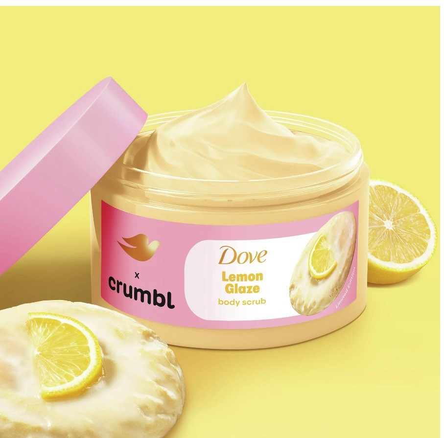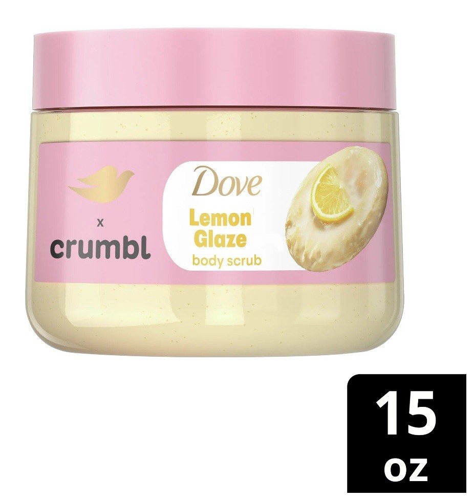 Dove x Crumbl Exfoliating Body Scrub Lemon Glaze Cookie | Limited Edition, 15 oz. Dove Crumbl Exfoliating Body Scrub Lemon Cookie, 15 oz. If your day just isn’t complete without a new Crumbl drop, we’re here to sweeten your mood. New Limited Edition Dove x Crumbl Lemon Glaze Body Scrub is on its way to your shower. With the iconic scent of lemon sugar cookie topped with a sweet buttery glaze, inspired by the classic Crumbl cookie. The icing on the cookie? You can get your fix every day. While your senses are fangirling over the scent, the plant-based cleansers and ¼ moisturizing cream are gently exfoliating your skin. No lemon peel looking skin in sight, just 100% pure glow. So good, right? But warning: You’ll smell deliciously sweet Dove Crumbl Exfoliating Body Scrub Lemon Cookie, 15 oz Crumbl Lemon Glaze cookies for days …now in a Body Scrub Notes of lemon sugar cookie topped with a sweet buttery glaze for the shower Plant-based cleansers to deeply nourish and exfoliate your skin No sulfate cleansers pH balanced formula for soft, smooth skin