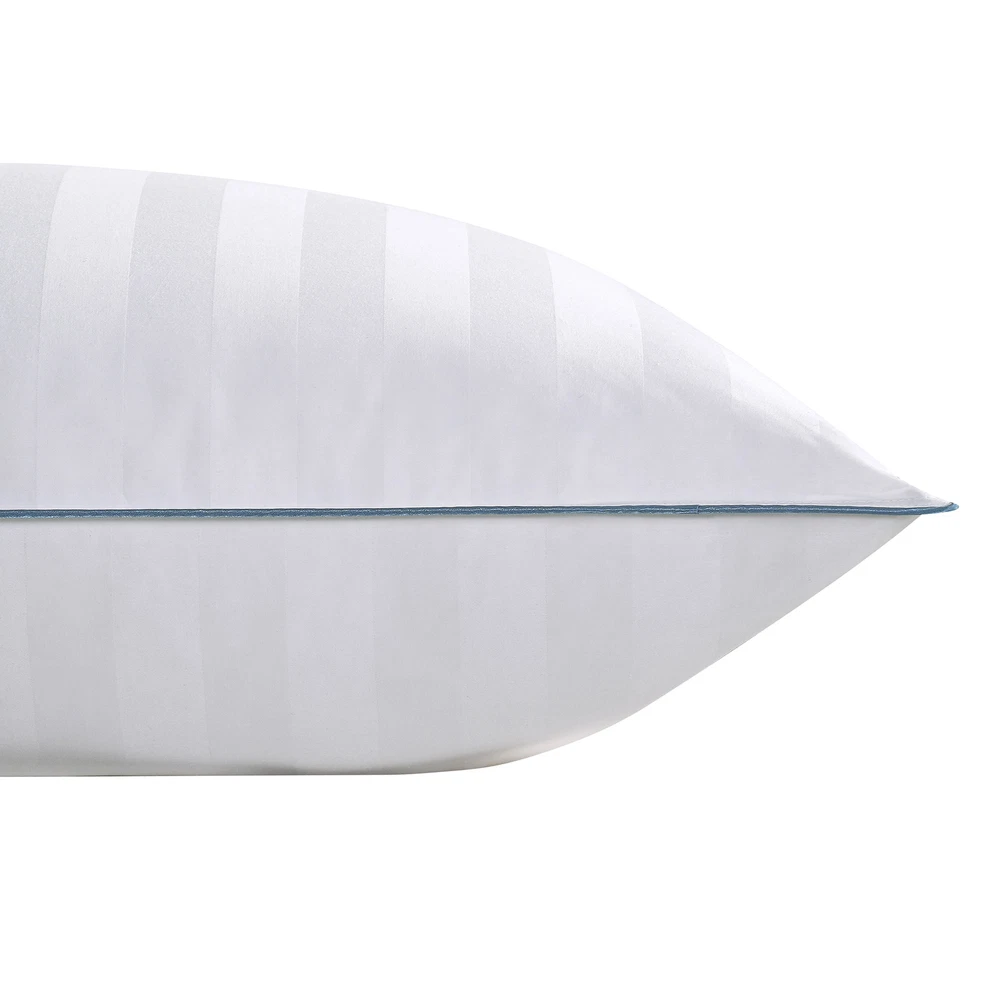 Experience Luxury Rest with the DownHaven Down Filled Pillow Enhance your sleep experience with the DownHaven Luxury Down Filled Pillow , the perfect balance of plush softness and supportive comfort. Designed with premium materials, this pillow offers unmatched luxury for all sleeping positions. Whether you are a side, back, or stomach sleeper, this pillow is tailored for ultimate relaxation. Key Features: Luxurious Cover: 500-thread count, 100% cotton with a sophisticated damask stripe pattern. Premium Fill: 650 fill power white down for cloud-like softness and support. Medium Density: Perfectly balanced to provide gentle yet firm support. Oeko-Tex Certified: Free from harmful chemicals, ensuring a safe and healthy sleep environment. Sustainable Packaging: Environmentally friendly design. Care Instructions: Machine washable for easy maintenance. Specifications: Brand: DownHaven Dimensions: 20" L x 28" W x 5.5" H Weight: 2 lbs Material: 500-thread count 100% cotton cover Fill Material: White down (650 fill power) Pillow Size: Jumbo Support Level: Medium Sleep Position: Suitable for all sleeping positions Care Instructions: Machine wash cold on a gentle cycle. Use an extra spin cycle to reduce drying time. Tumble dry on low until thoroughly dry. Avoid ironing; dry cleaning recommended for best results. Condition: Brand new, sealed in sustainable packaging. Shipping Details: Fast shipping with care. Delivery available to most regions (restrictions apply to certain ZIP codes, P.O. boxes, and remote areas). Transform your nightly rest with the DownHaven Luxury Down Filled Pillow —where elegance meets ultimate comfort. Order now and enjoy free shipping!