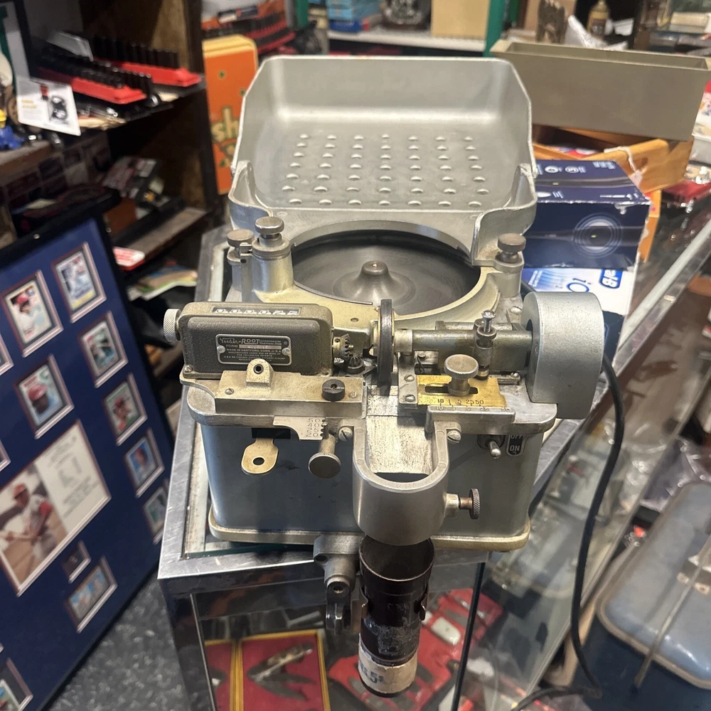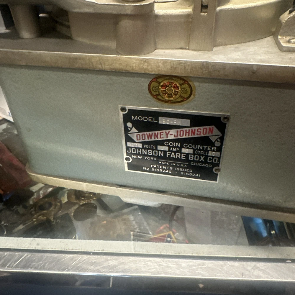 This Downey Johnson coin counter is a must-have for any business or industrial setting. With its wheel electric model and manual counting type, it efficiently and accurately counts coins and changes. The brand name is well-known in the industry, and this model, in particular, is highly regarded. Whether you're in the retail or services industry or handling money at a point of sale, this coin counter is a great addition to your equipment. It falls under the category of business and industrial, retail and services, and point of sale and money handling. Invest in this Downey Johnson coin counter today and streamline your coin and change sorting process. The machine powers on spins and dumps the coins out as it should will need to be greased and maybe have the wheel changed out. Perfect perfect steam punk/industrial look