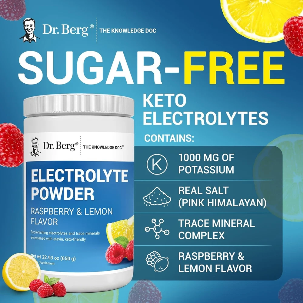 Brand Dr. Berg Nutritionals Flavor Raspberry & Lemon - 100 Servings Primary Supplement Type Potassium Unit Count 23.28 Ounce Item Form Powder Item Weight 1.5 Pounds Diet Type Keto Product Benefits Support Muscle Health, Energy Management Age Range (Description) Adult Package Information Canister See more About this item ๐๐๐๐๐ง๐ฅ๐ข๐๐ฌ๐ง๐๐ฆ ๐ฃ๐ข๐ช๐๐๐ฅ ๐ก๐ข ๐ฆ๐จ๐๐๐ฅ - Each serving is loaded with 1,000 mg of potassium as opposed to only 250 mg other brands offer. Additionally, this electrolytes powder offers a very unique blend of Calcium, Magnesium, Chloride (from Pink Himalayan Salt - NOT table salt other brands offer) and an amazing Trace Mineral Complex. This refreshing and delicious Raspberry and Lemon flavor includes 100 servings. ๐ ๐๐ซ๐๐ก๐ ๐๐ก๐ฆ๐ง๐ฅ๐จ๐๐ง๐๐ข๐ก๐ฆ - Add one scoop to 16 oz of water. Shake or stir well. Allow 5โ10 minutes for full dissolution, as no dissolving agents are used. ๐๐ก๐๐ฅ๐๐๐๐๐๐ ๐๐ก๐๐ฅ๐๐๐๐๐ก๐ง๐ฆ - We're sorry to say it, but if youโre looking for cheap, youโre in the wrong place. We search far and wide, domestic and international, to provide high-quality ingredients for which your body will thank you. Unfortunately, getting the best ingredients from domestic and international farms can come at a higher-than-normal cost. If quality, satisfaction, and results are essential to you, youโre in the right place! ๐ช๐๐ฌ ๐ช๐โ๐ฅ๐ ๐๐๐๐๐๐ฅ๐๐ก๐ง - Also known as The Knowledge Doc, Dr. Berg has spent most of his life researching and providing natural solutions to everyday health problems. This extensive research and thousands of hours working with patients are what sets us apart from other brands, as it has allowed us to create proprietary blends you canโt get anywhere else. ๐ฏ๐ฌ-๐๐๐ฌ ๐๐๐ฎ๐ฟ๐ฎ๐ป๐๐ฒ๐ฒ - If for any reason you're not happy with the results you experience within the first 30 days, we're happy to give you a full refund! Send us a message, and the refund will be processed as long as it's requested within 30 days of purchase.