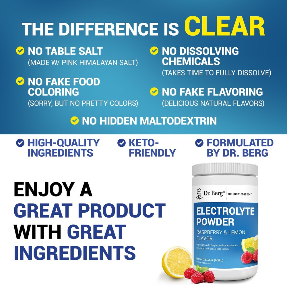 Dr. Berg Zero Sugar Hydration Keto Electrolyte Powder - Enhanced w/ 1000 mg of Potassium & Real Pink Himalayan Salt (NOT Table Salt) - Raspberry & Lemon Flavor Hydration Drink Supplement, 100 Servings ๐๐๐๐๐ง๐ฅ๐ข๐๐ฌ๐ง๐๐ฆ ๐ฃ๐ข๐ช๐๐๐ฅ ๐ก๐ข ๐ฆ๐จ๐๐๐ฅ - Each serving is loaded with 1,000 mg of potassium as opposed to only 250 mg other brands offer. Additionally, this electrolytes powder offers a very unique blend of Calcium, Magnesium, Chloride (from Pink Himalayan Salt - NOT table salt other brands offer) and an amazing Trace Mineral Complex. This refreshing and delicious Raspberry and Lemon flavor includes 100 servings. ๐ ๐๐ซ๐๐ก๐ ๐๐ก๐ฆ๐ง๐ฅ๐จ๐๐ง๐๐ข๐ก๐ฆ - Add one scoop to 16 oz of water. Shake or stir well. Allow 5โ10 minutes for full dissolution, as no dissolving agents are used. ๐๐ก๐๐ฅ๐๐๐๐๐๐ ๐๐ก๐๐ฅ๐๐๐๐๐ก๐ง๐ฆ - We're sorry to say it, but if youโre looking for cheap, youโre in the wrong place. We search far and wide, domestic and international, to provide high-quality ingredients for which your body will thank you. Unfortunately, getting the best ingredients from domestic and international farms can come at a higher-than-normal cost. If quality, satisfaction, and results are essential to you, youโre in the right place! ๐ช๐๐ฌ ๐ช๐โ๐ฅ๐ ๐๐๐๐๐๐ฅ๐๐ก๐ง - Also known as The Knowledge Doc, Dr. Berg has spent most of his life researching and providing natural solutions to everyday health problems. This extensive research and thousands of hours working with patients are what sets us apart from other brands, as it has allowed us to create proprietary blends you canโt get anywhere else. ๐ฏ๐ฌ-๐๐๐ฌ ๐๐๐ฎ๐ฟ๐ฎ๐ป๐๐ฒ๐ฒ - If for any reason you're not happy with the results you experience within the first 30 days, we're happy to give you a full refund! Send us a message, and the refund will be processed as long as it's requested within 30 days of purchase. Shipping We offer FREE shipping on all orders! We ship within Three business days of payment, usually sooner. We use a selection of shipping services such as UPS, FedEx, USPS etc. We only ship to the lower 48 states, no APO/FPO addresses or PO Boxes allowed. Local pickups and combined shipping options are not provided at this time. Return You can return a product for up to 30 days from the date you purchased it. Any product you return must be in the same condition you received it and in the original packaging. Please keep the receipt. Payment We accept payment by any of the following methods: PayPal Please pay as soon as possible after winning an auction, as that will allow us to post your item to you sooner! Feedback Customer satisfaction is very important to us. If you have any problem with your order, please contact us and we will do our best to make you satisfied. Contact Us If you have any queries, please contact us via ebay. We usually respond within 24 hours on weekdays. Please visit our eBay store to check out other items for sale! Thank you for shopping at our store.