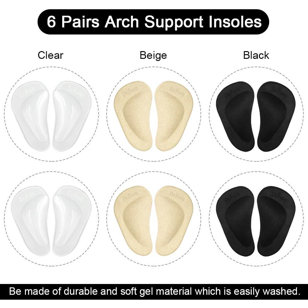 Dr. Foot's Arch Support Shoe Inserts for Flat Feet, Gel Arch Pads for Plantar Fasciitis, Adhesive Insoles for Relieve Pain for Women and Men (3 Colors - 6 Pairs, 6 Count (Pack of 1)) Dr. Foot's Gel Arch Support Cushions for Flat Feet, Shoe Insoles for Flat Feet, Reusable Arch Inserts for Plantar Fasciitis, Adhesive Arch Pad for Relieve Pressure and Feet Pain, Arch Support Shoe Inserts for Men & Women FOOT PAIN RELIEF: Dr. Foot's arch support shoe inserts help relieve pain and pressure related to Plantar Fasciitis, tendonitis, arthritis, high arch and a variety of Arch problems. Shipping from the USA All of our products are shipped from the USA, ensuring quick delivery to your destination. Payment We offer the following payment methods: PayPal, credit card, bank transfer, and eBay's secure payment system. Free Shipping & Free Returns Shipping within the USA is FREE. Additionally, any return is absolutely free for you. Risk-Free Purchase You have the option to return an item within 30 days without any justification. We cover the return shipping costs! Fast Shipping We ship immediately upon receipt of payment. Generally, the package is delivered within 2-3 days in the USA. If it takes longer, we will contact you. Quality and Costs Made in Europe, USA, China No customs fees or additional charges Total satisfaction guarantee Invoice with declared VAT available upon request in .pdf format Feedback Your feedback is very important to us. After you pay for your purchase, you will automatically receive positive feedback from us.