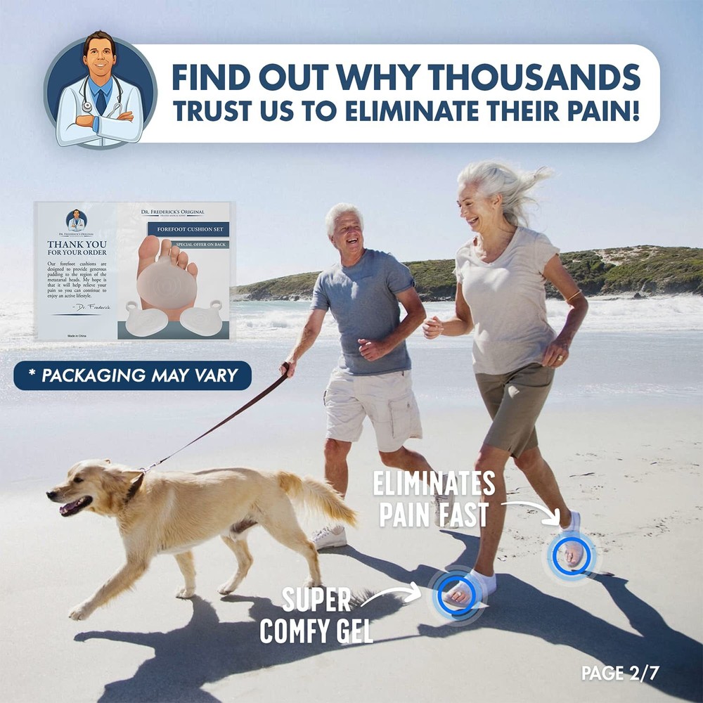 Dr. Frederick's Original Metatarsal Pads - 4 Pieces - Ball of Foot Cushions for Rapid Pain Relief - Gel Foot Pads - Shoe Inserts for Men and Women Say Goodbye To Ball-Of-Foot Pain: This set of four (2 pairs) Dr. Frederick’s Original Metatarsal Pads are designed to rescue your aching feet. If you have foot pain due to Morton’s Neuroma, sesamoiditis, calluses, metatarsalgia, or standing in uncomfortable shoes all day, our pads are here to provide instant relief. Take the pressure off the balls of your feet, and stand comfortably again! Comfortable Gel Relieves Pressure: All-day pain relief meets all-day comfort! Our Metatarsal Pads are designed with padded gel cushioning, to soothe your feet and relieve pressure points. With our help, you’ll be back on your feet and back to hiking, walking, or working comfortably again. Perfect Fit For Most Feet: Looking for the best shoe inserts for women or men? Our Pads fit snugly under the ball of your foot, and stay in place all day. Plus, the open design allows for more air circulation, and a better fit in a variety of shoes. In fact, we’re confident our pads are better than insoles for giving your feet the break they deserve. Try ‘em in heels, boots, loafers, or sneakers! Unbeatable Premium Quality: We know you have a choice of foot care products, so we pair our doctor-designed quality with an affordable value you deserve. You have enough to worry about without managing pricy inserts, expensive doctors’ visits, or custom-fit shoes - let us take a load off with our comfy gel Metatarsal Pads. They’re even washable so you can wear them over and over! A Commitment To Your Satisfaction: At Dr. Frederick's Original, we prioritize your satisfaction, which means creating the best possible products for you. We stand behind our Original Metatarsal Pads with our industry-leading pledge. If our product doesn't help you get back to doing what you love, we're dedicated to finding a satisfactory solution. Say Goodbye To Ball-Of-Foot Pain: This set of four (2 pairs) Dr. Frederick’s Original Metatarsal Pads are designed to rescue your aching feet. If you have foot pain due to Morton’s Neuroma, sesamoiditis, calluses, metatarsalgia, or standing in uncomfortable shoes all day, our pads are here to provide instant relief. Take the pressure off the balls of your feet, and stand comfortably again! Comfortable Gel Relieves Pressure: All-day pain relief meets all-day comfort! Our Metatarsal Pads are designed with padded gel cushioning, to soothe your feet and relieve pressure points. With our help, you’ll be back on your feet and back to hiking, walking, or working comfortably again. Perfect Fit For Most Feet: Looking for the best shoe inserts for women or men? Our Pads fit snugly under the ball of your foot, and stay in place all day. Plus, the open design allows for more air circulation, and a better fit in a variety of shoes. In fact, we’re confident our pads are better than insoles for giving your feet the break they deserve. Try ‘em in heels, boots, loafers, or sneakers! Unbeatable Premium Quality: We know you have a choice of foot care products, so we pair our doctor-designed quality with an affordable value you deserve. You have enough to worry about without managing pricy inserts, expensive doctors’ visits, or custom-fit shoes - let us take a load off with our comfy gel Metatarsal Pads. They’re even washable so you can wear them over and over! A Commitment To Your Satisfaction: At Dr. Frederick's Original, we prioritize your satisfaction, which means creating the best possible products for you. We stand behind our Original Metatarsal Pads with our industry-leading pledge. If our product doesn't help you get back to doing what you love, we're dedicated to finding a satisfactory solution. Shipping from the USA All of our products are shipped from the USA, ensuring quick delivery to your destination. Payment We offer the following payment methods: PayPal, credit card, bank transfer, and eBay's secure payment system. Free Shipping & Free Returns Shipping within the USA is FREE. Additionally, any return is absolutely free for you. Risk-Free Purchase You have the option to return an item within 30 days without any justification. We cover the return shipping costs! Fast Shipping We ship immediately upon receipt of payment. Generally, the package is delivered within 2-3 days in the USA. If it takes longer, we will contact you. Quality and Costs Made in Europe, USA, China No customs fees or additional charges Total satisfaction guarantee Invoice with declared VAT available upon request in .pdf format Feedback Your feedback is very important to us. After you pay for your purchase, you will automatically receive positive feedback from us.