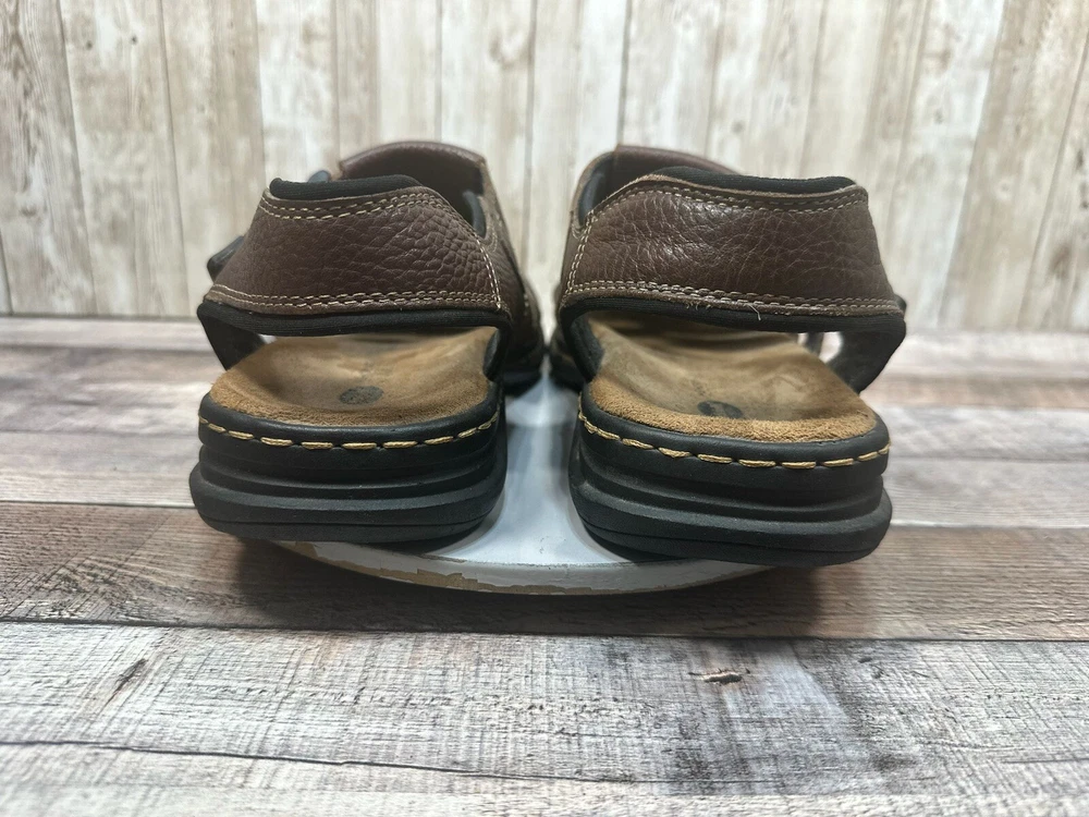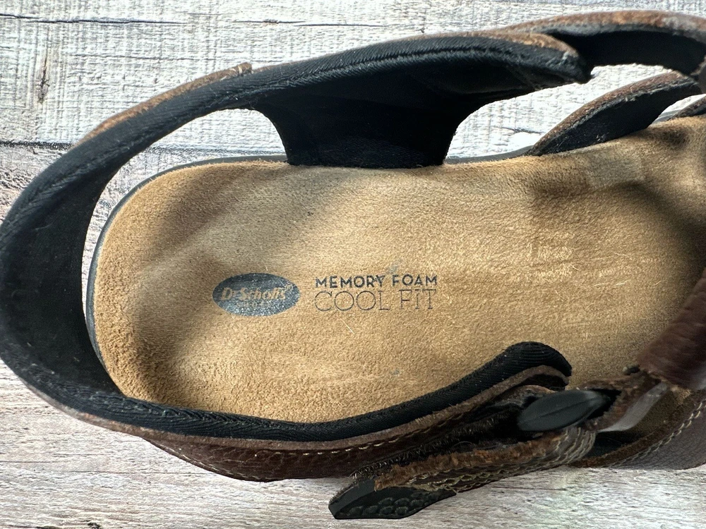The Dr. Scholl's Gaston Men's Brown Leather Sandals offer a comfortable fit with memory foam insoles, making them perfect for casual occasions during the summer and spring seasons. Very good condition. Please check all the pictures.